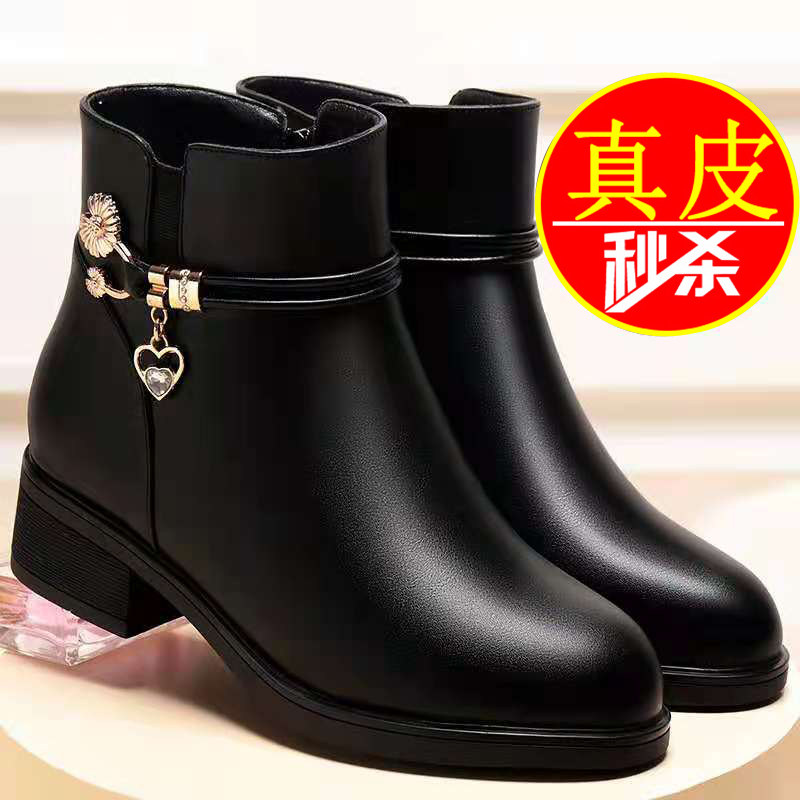 Демисезонные утепленные короткие сапоги, удерживающая тепло обувь на платформе для матери, из натуральной кожи, для среднего возраста
