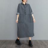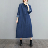 Осенняя джинсовая длинная юбка, лонгслив, платье, городской стиль, коллекция 2023, оверсайз, большой размер, в западном стиле