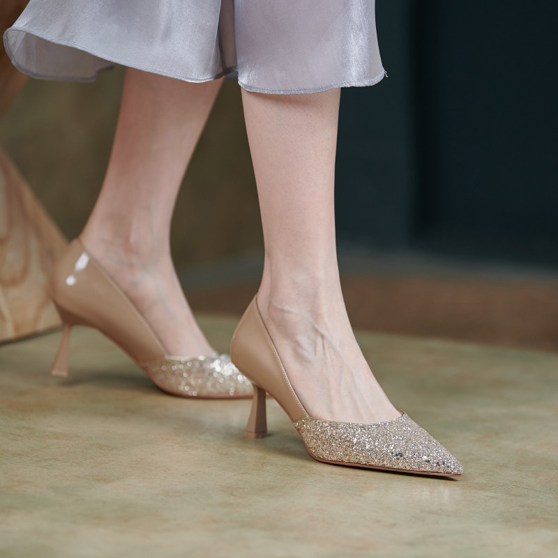 Grace Bulingbuling блестят ~ Новая обнаженная заостренная туфли с высокими туфлями с тонкими каблуками.
