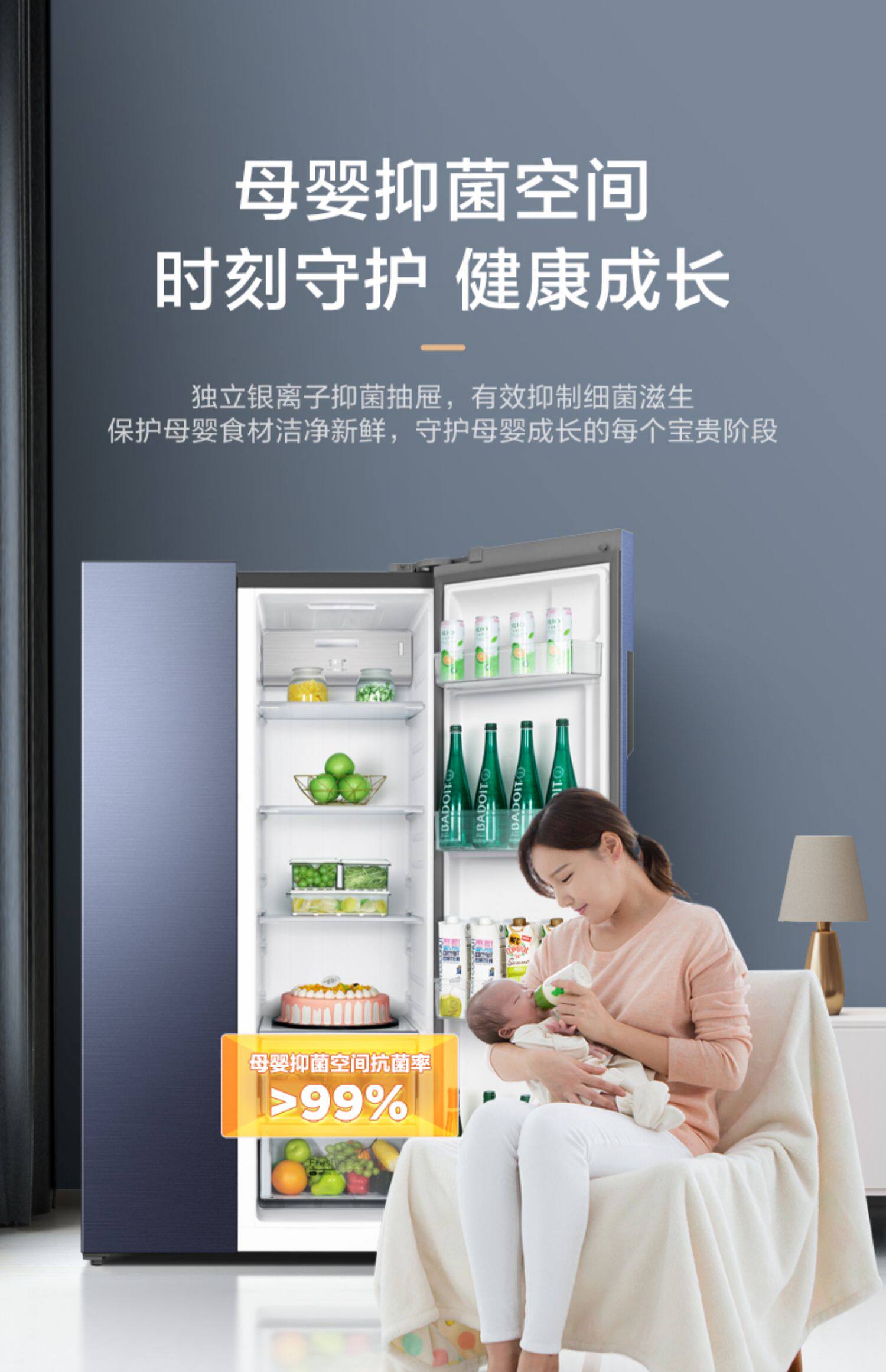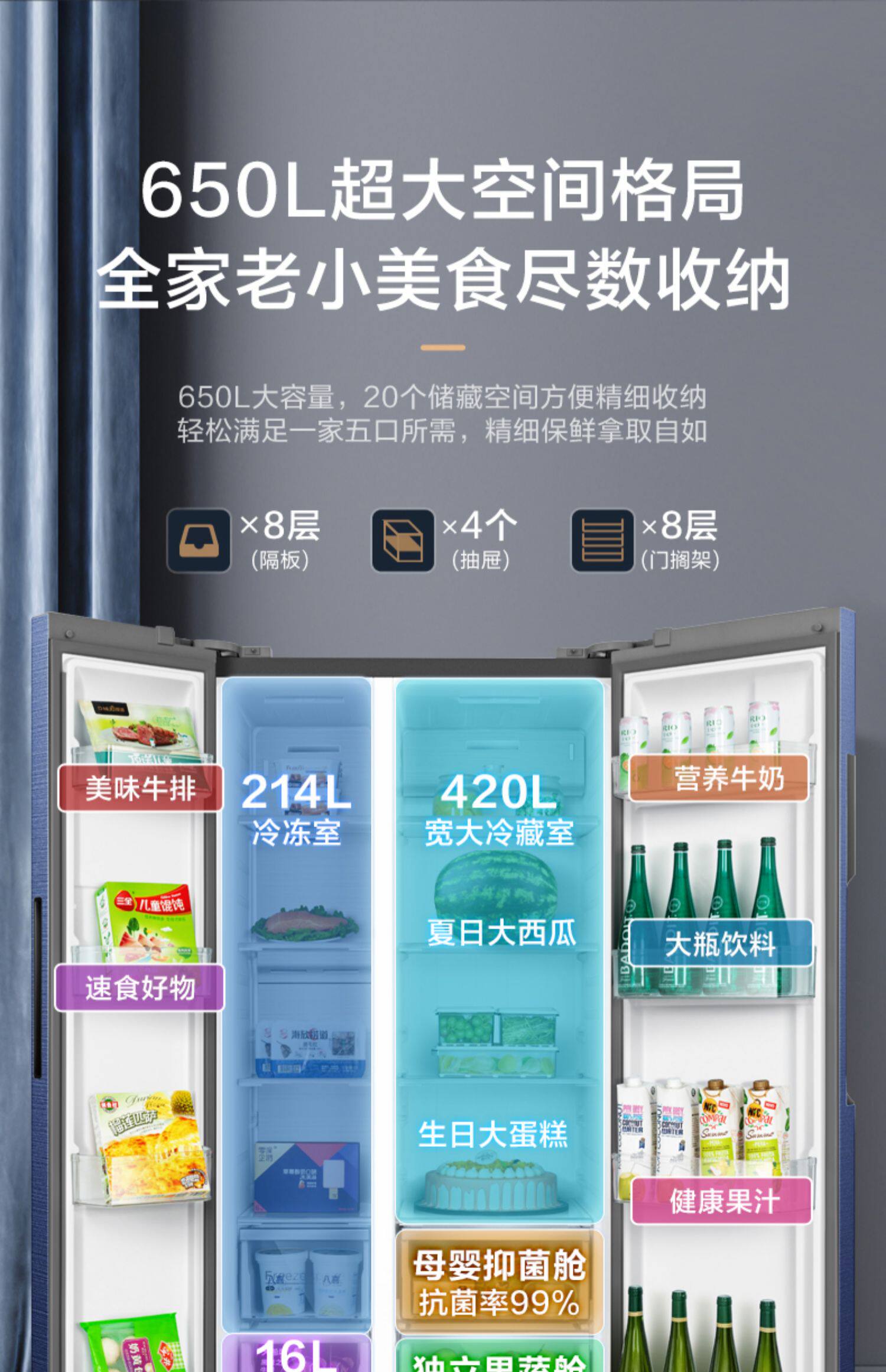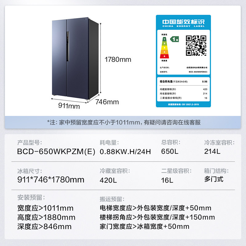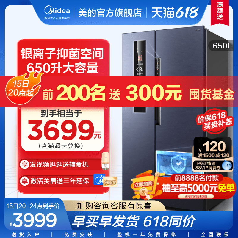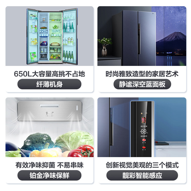 [Материнская и детская бактериостатическая] Midea 650L Plason Double -Open холодильник, мебельный холодный безморозный трансформатор без морозов большой