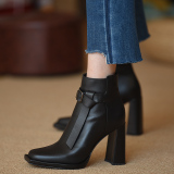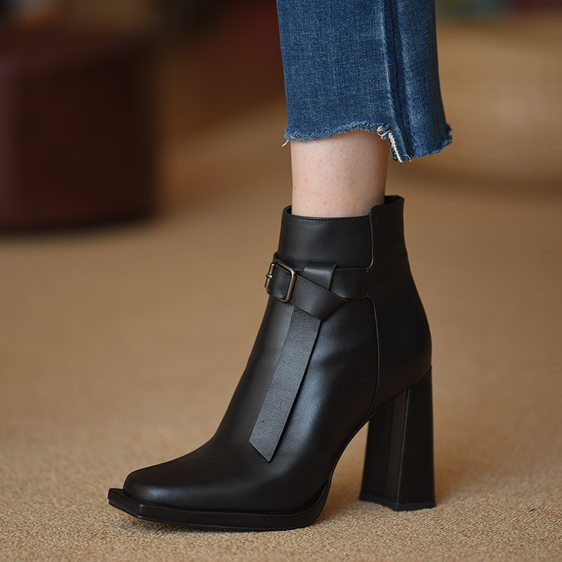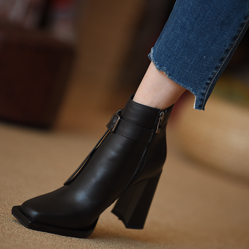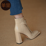 Демисезонные короткие сапоги, цепочка с молнией, ботинки, из натуральной кожи