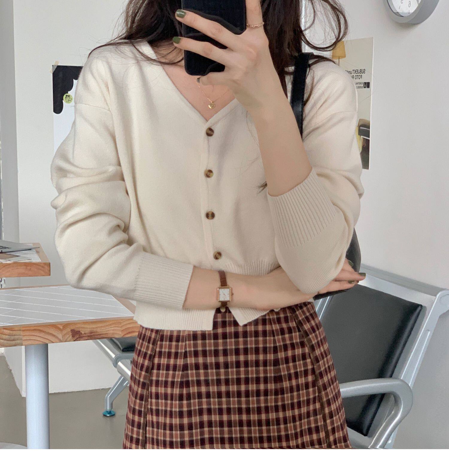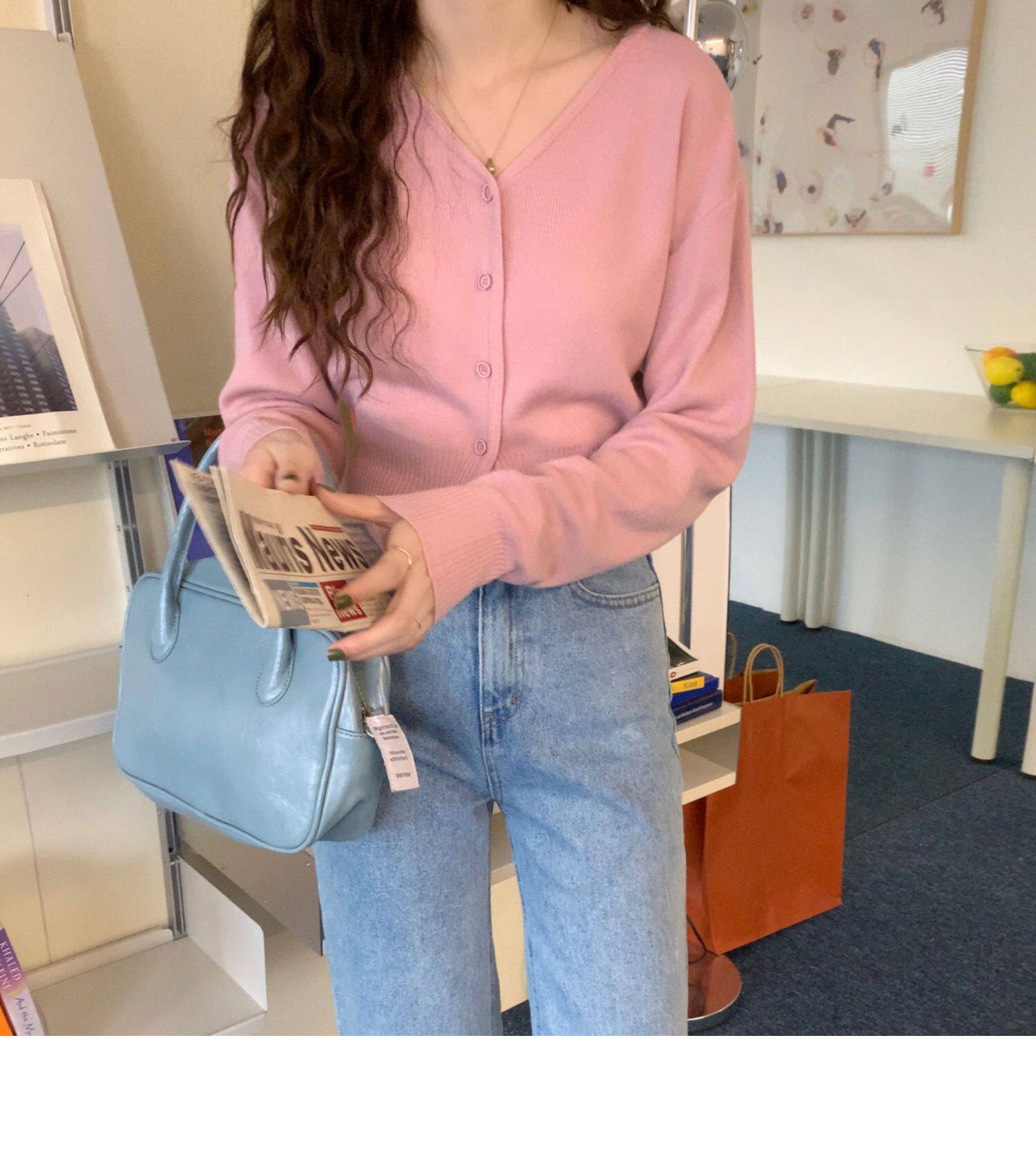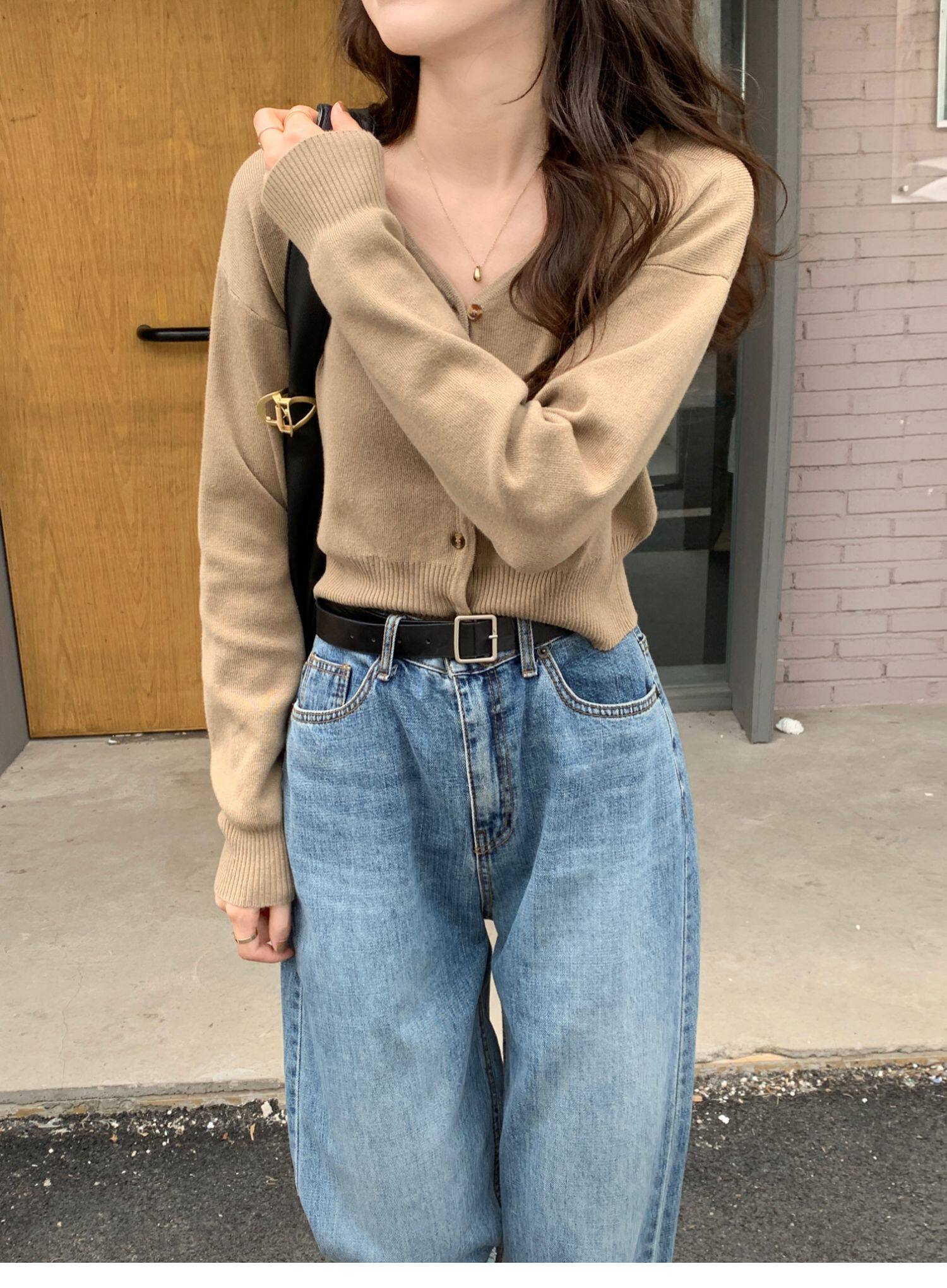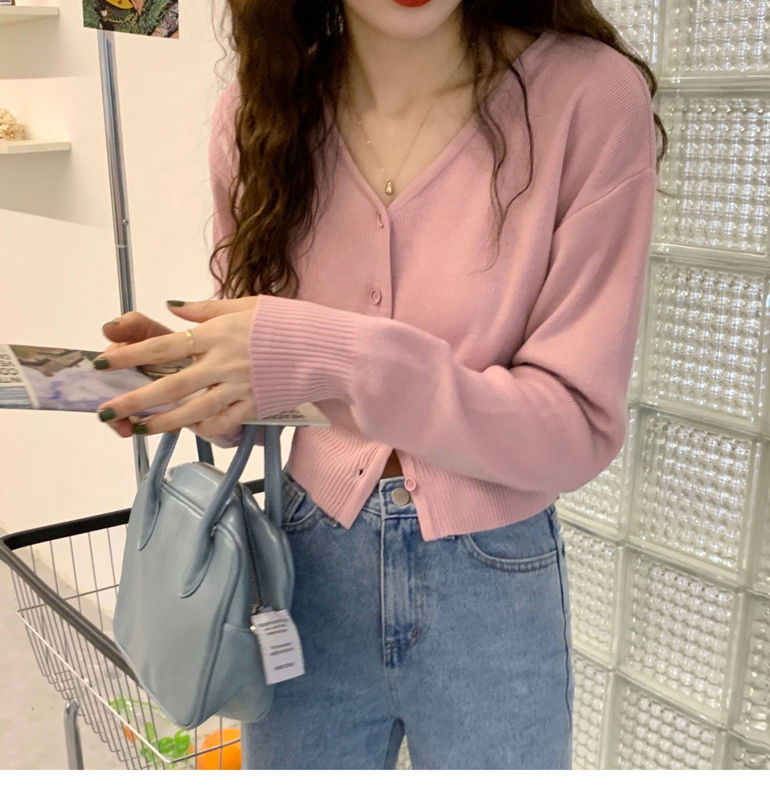Зеленый свитер, короткий трикотажный осенний кардиган, высокая талия, V-образный вырез