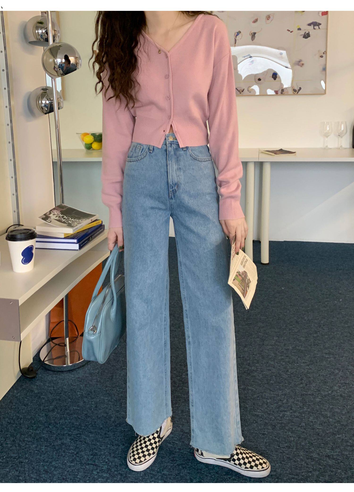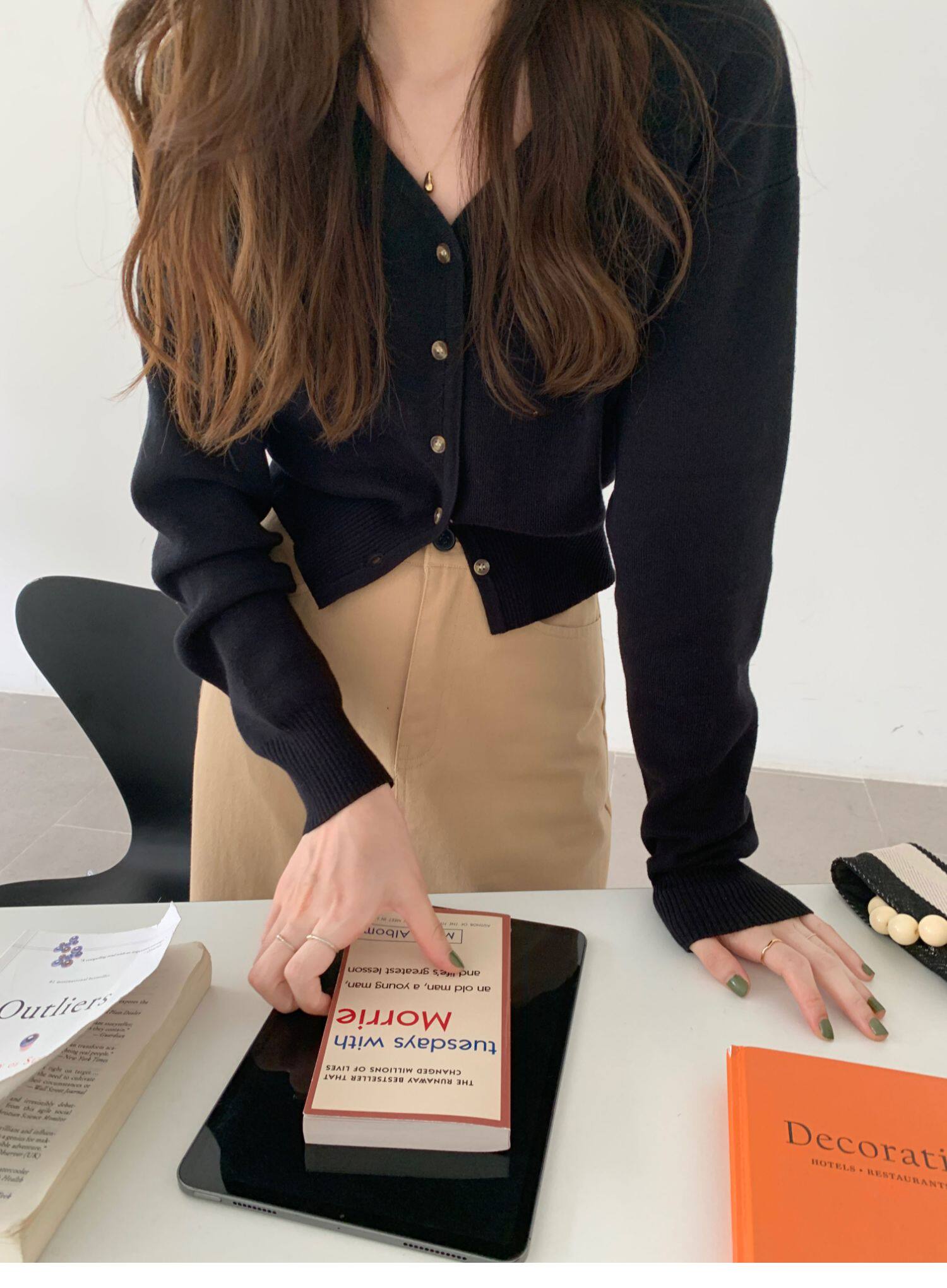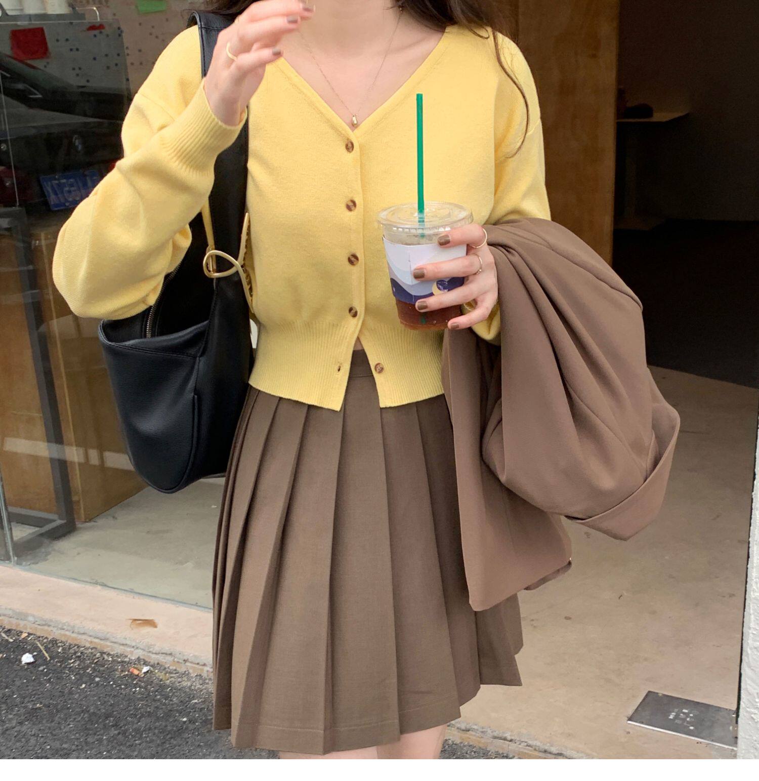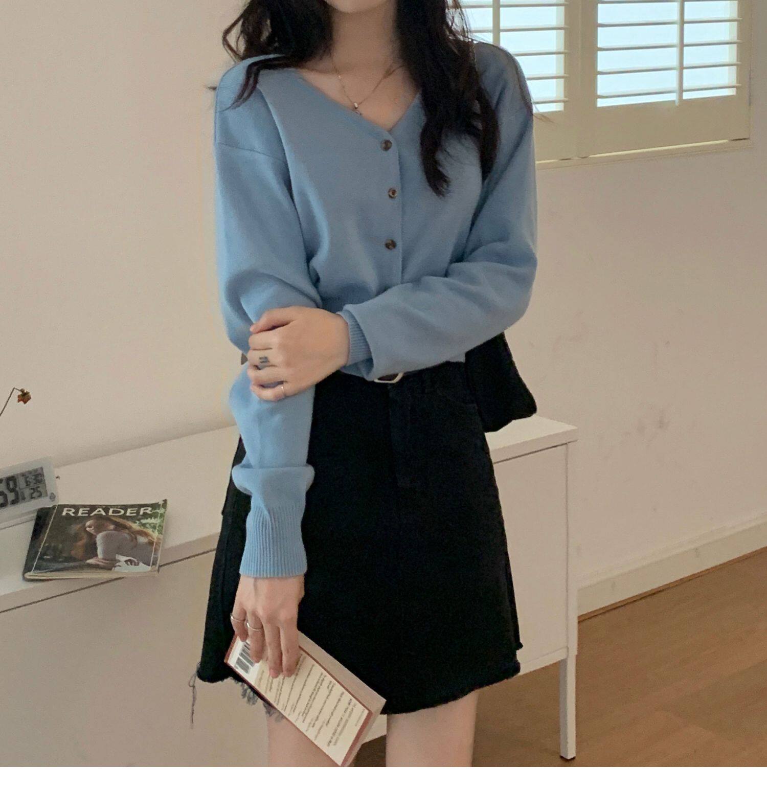 Зеленый свитер, короткий трикотажный осенний кардиган, высокая талия, V-образный вырез