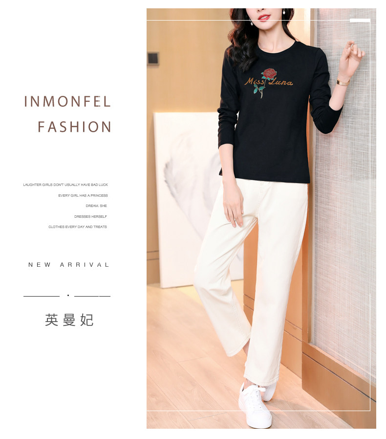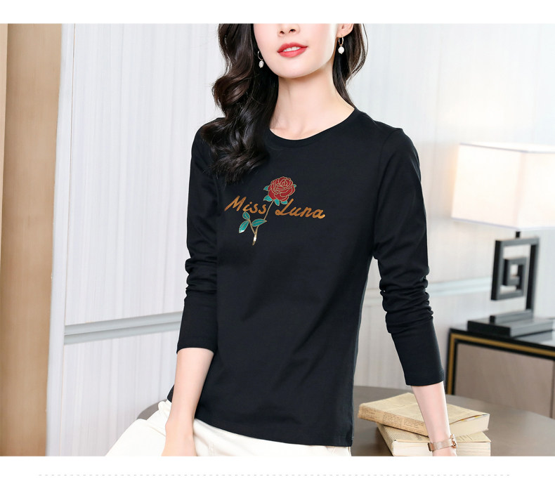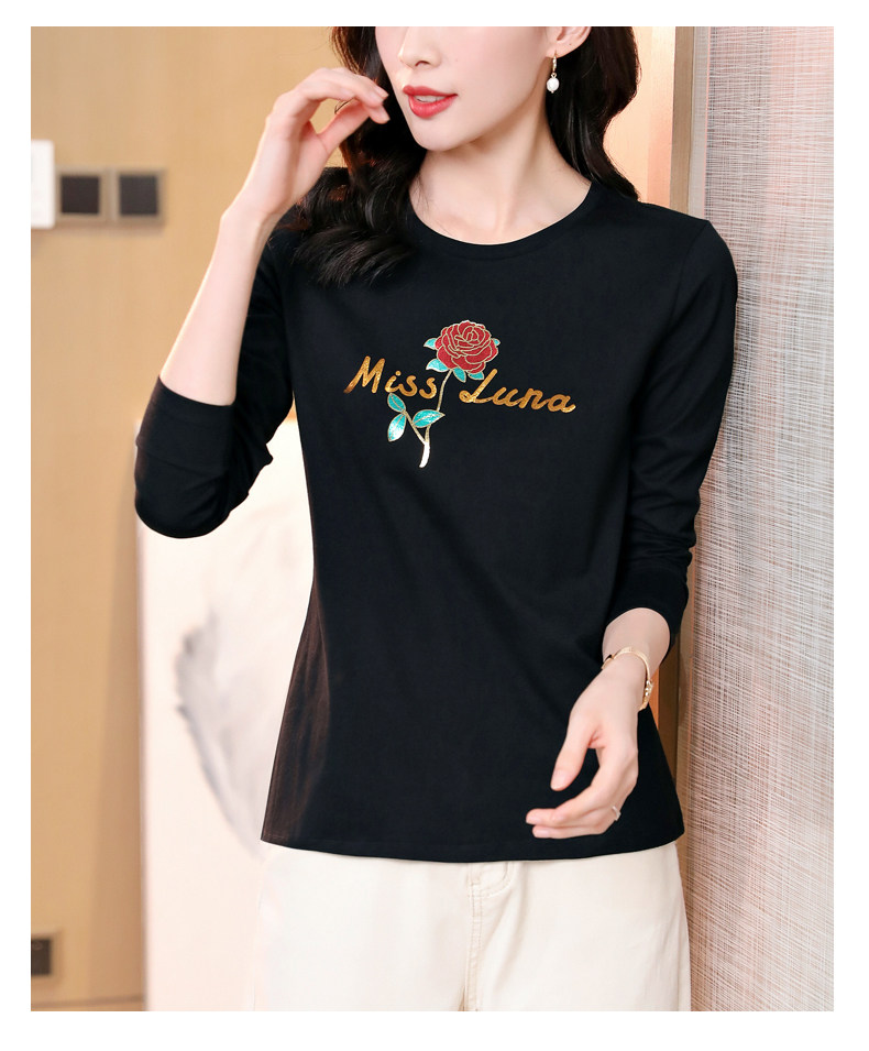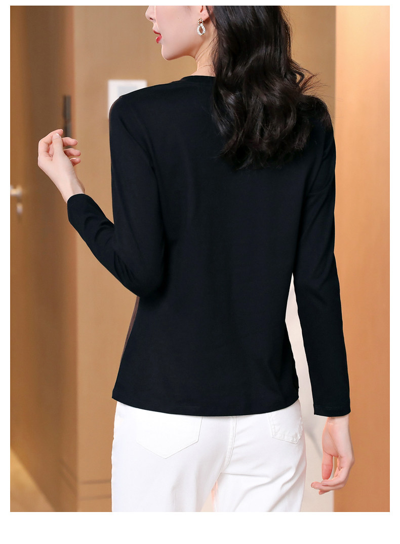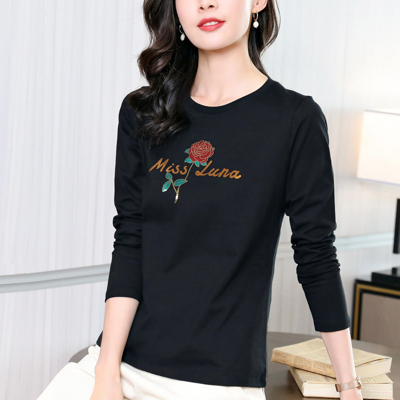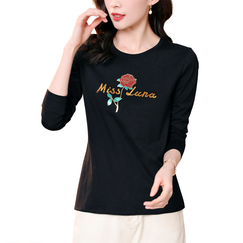 Осенний хлопковый черный базовый приятный телу лонгслив с круглым воротником, коллекция 2023
