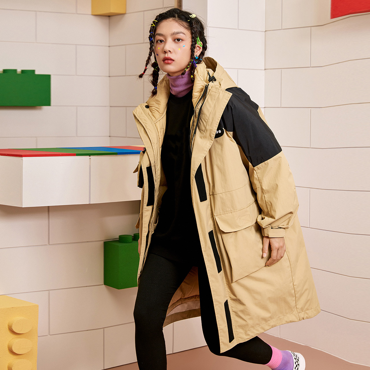 Демисезонный съемный модный пуховик для влюбленных, средней длины