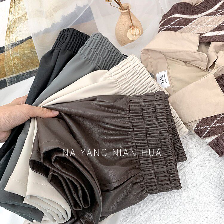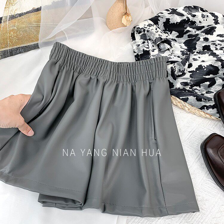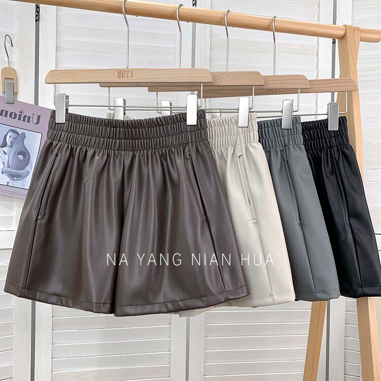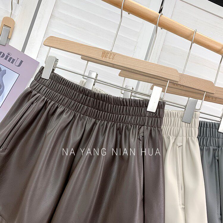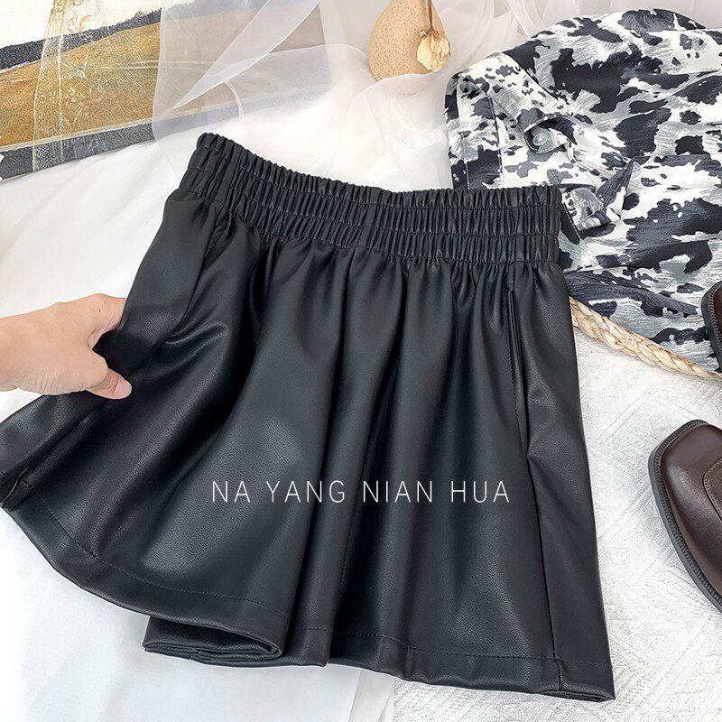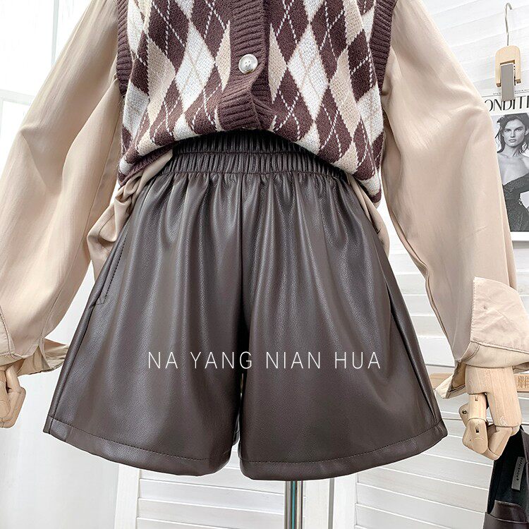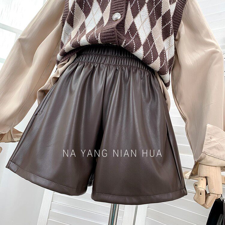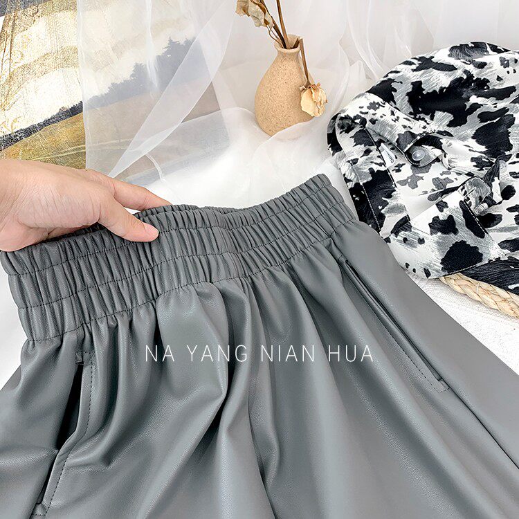 Полиуретановые шорты, дизайнерские леггинсы, штаны, высокая талия, в западном стиле, свободный крой, тренд сезона, А-силуэт