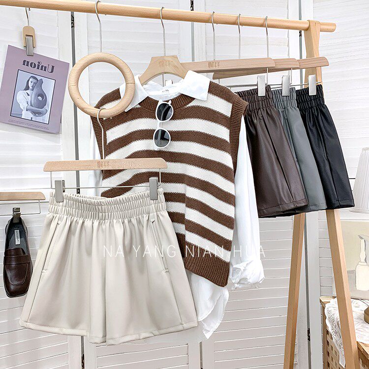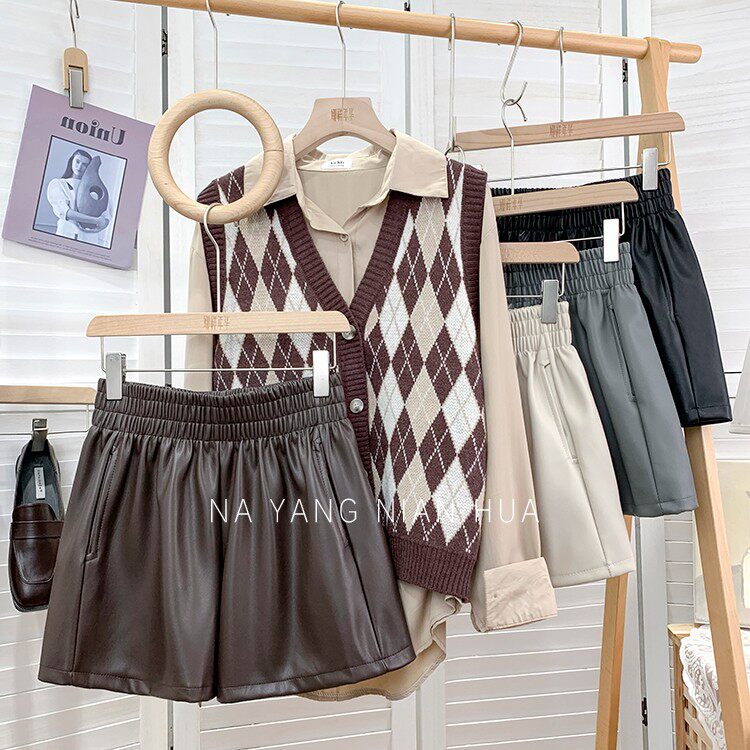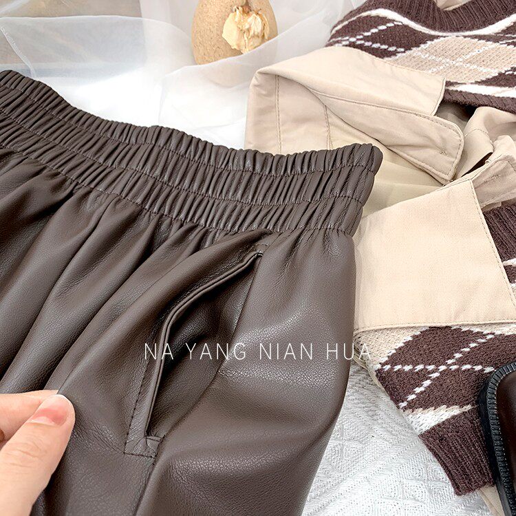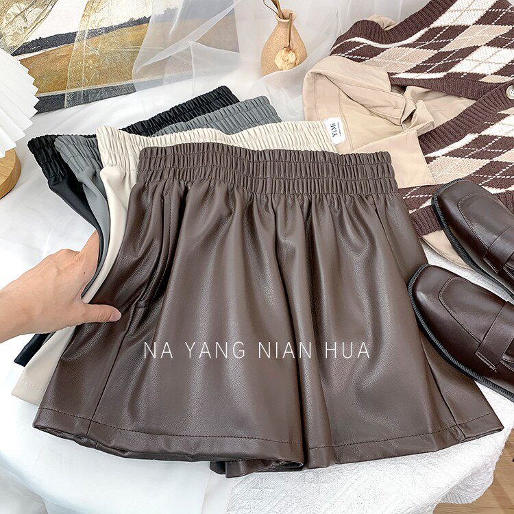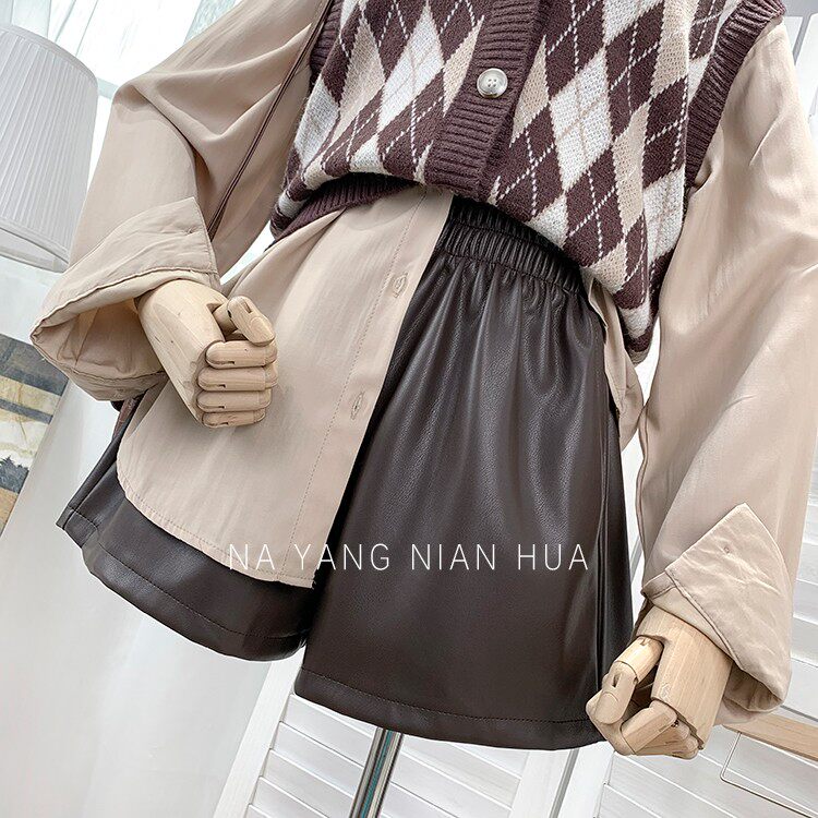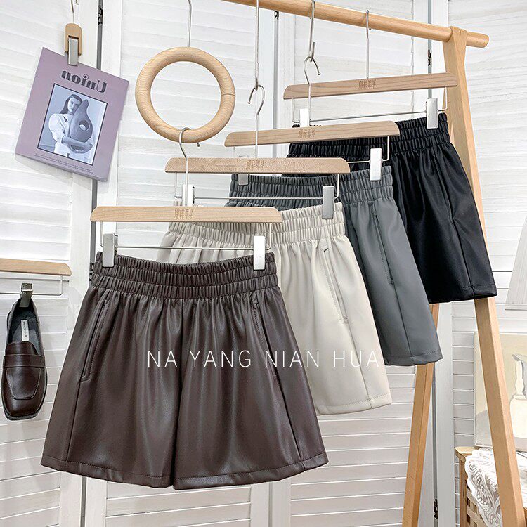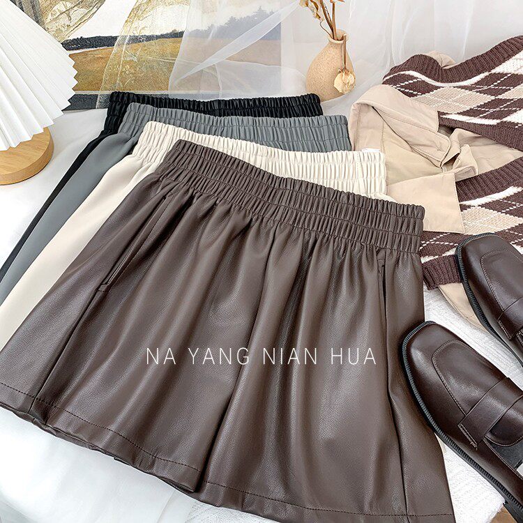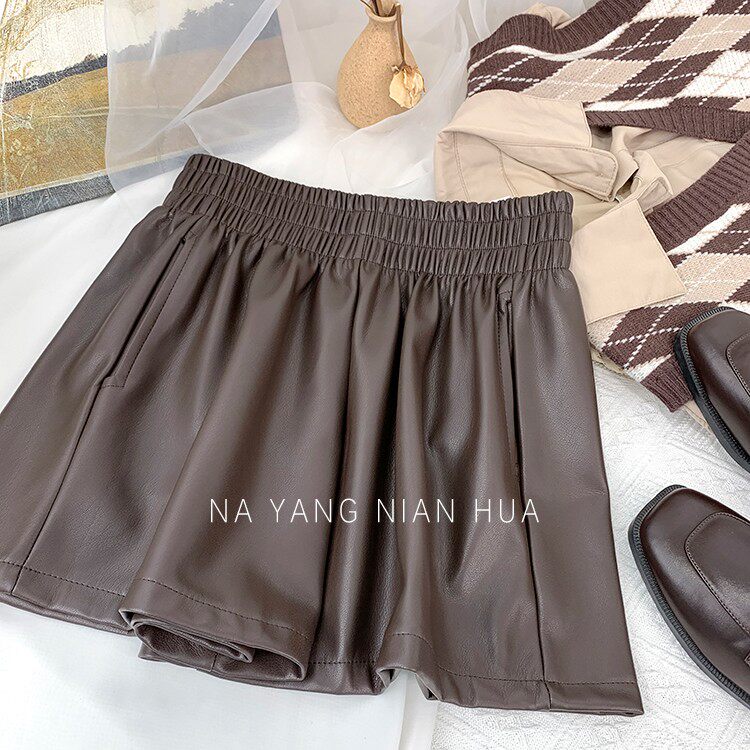 Полиуретановые шорты, дизайнерские леггинсы, штаны, высокая талия, в западном стиле, свободный крой, тренд сезона, А-силуэт