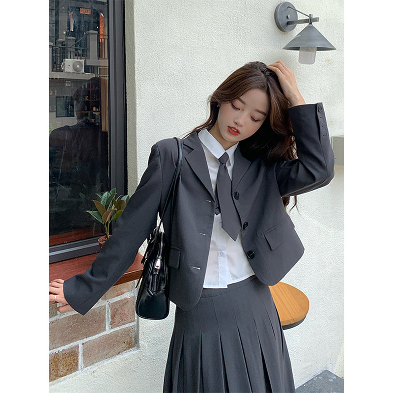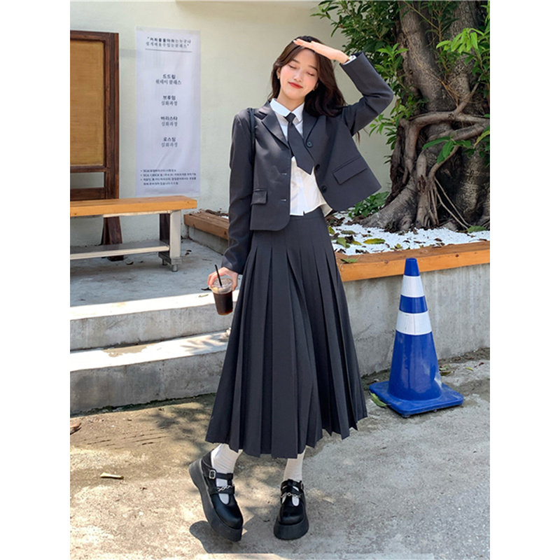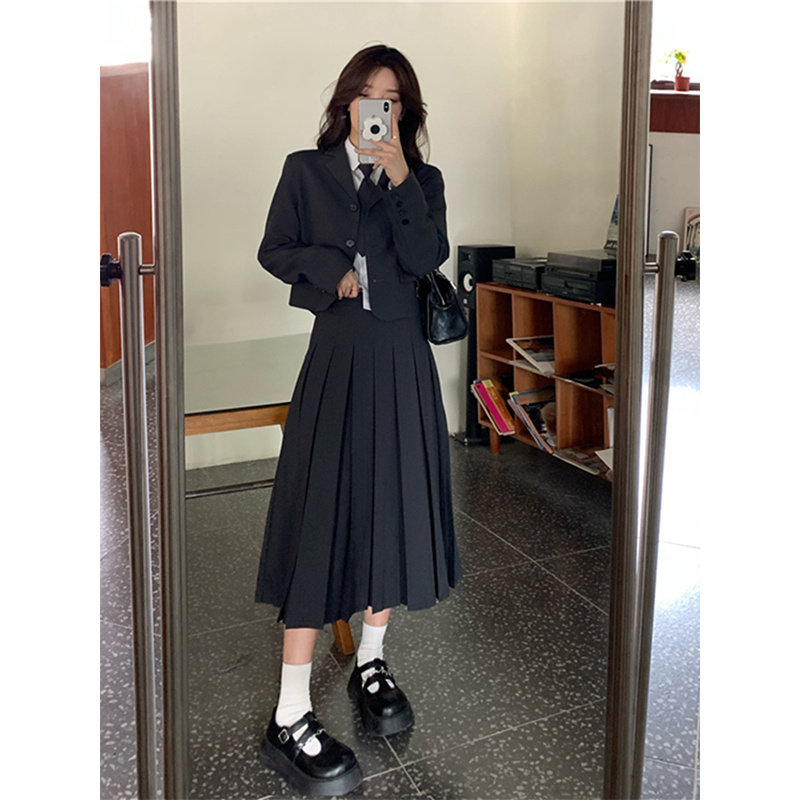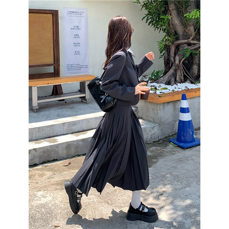 Осенний ретро пиджак классического кроя, комплект, юбка в складку