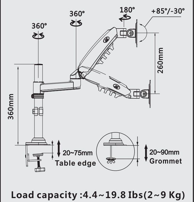N BH80 17 "-27" газовый пружинный монитор настольный монитор 2-9 кг с