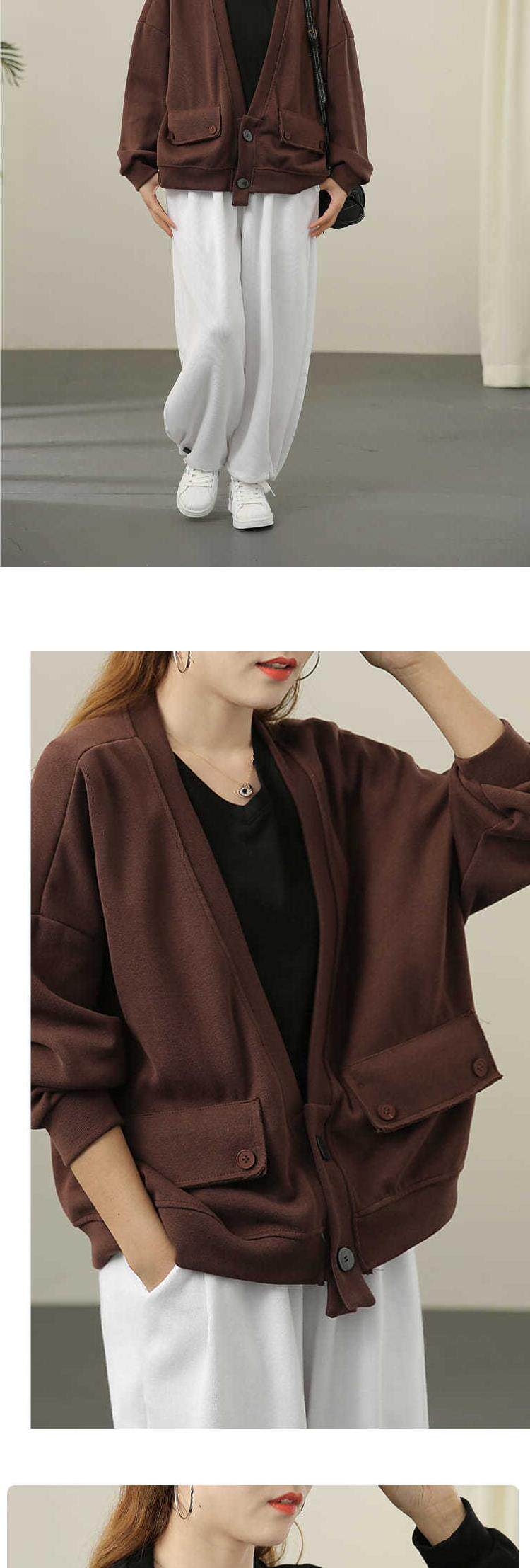 Толстовка, осенняя куртка, лонгслив для отдыха, коллекция 2021, оверсайз, V-образный вырез