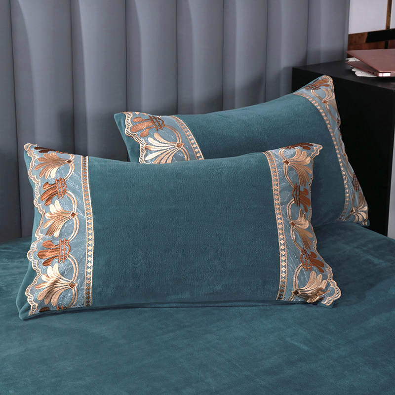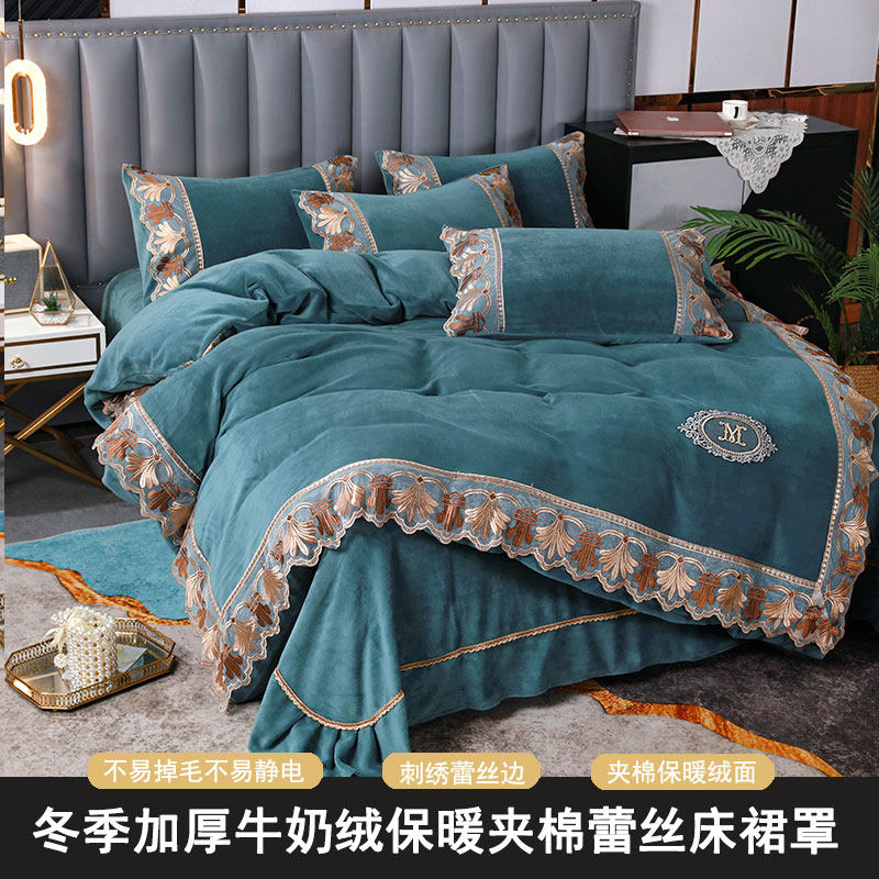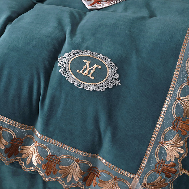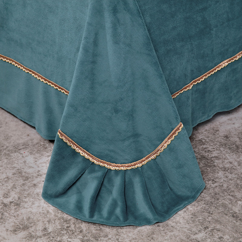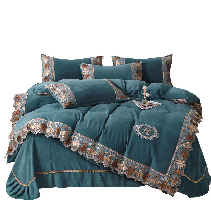 Бархатные джинсы с начесом, двусторонний комплект, коралловый бархатный кружевной пододеяльник, удерживающая тепло бархатная простыня, европейский стиль, с вышивкой, 4 предмета