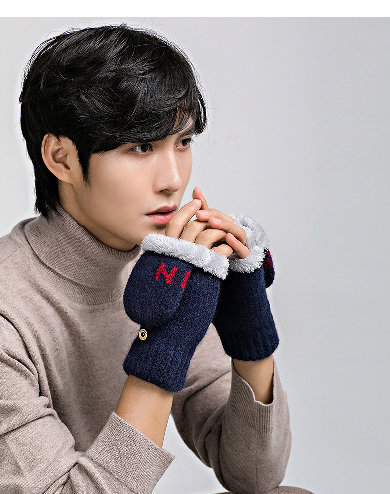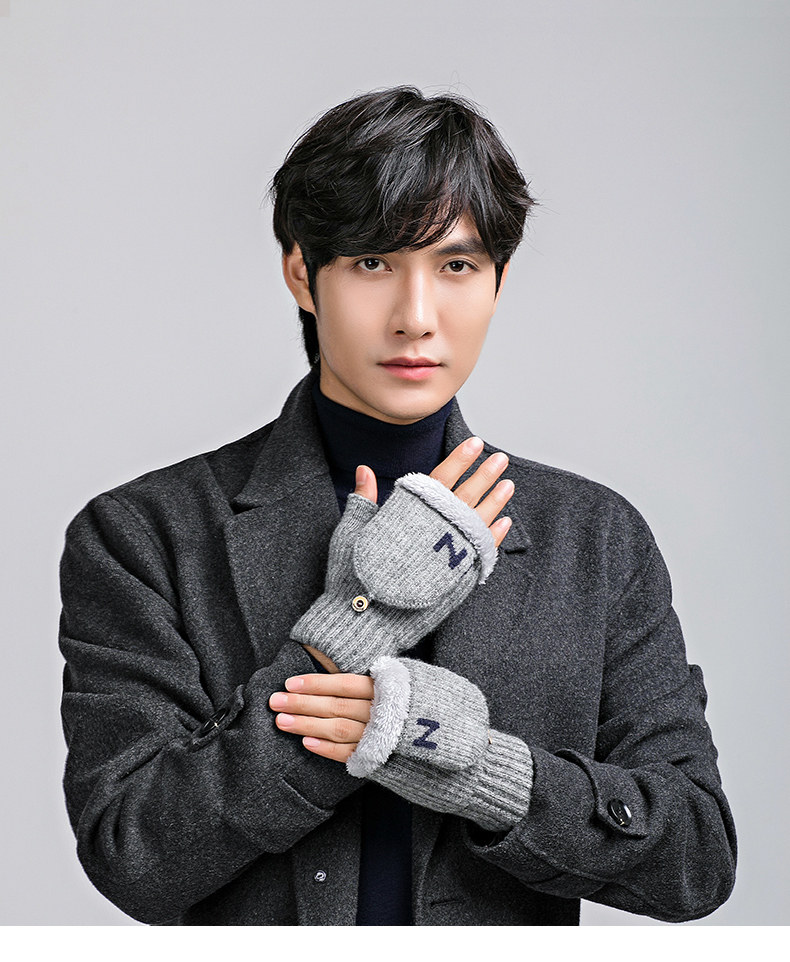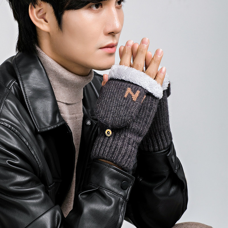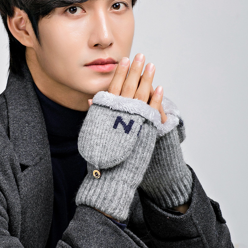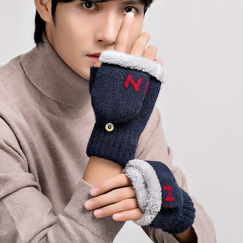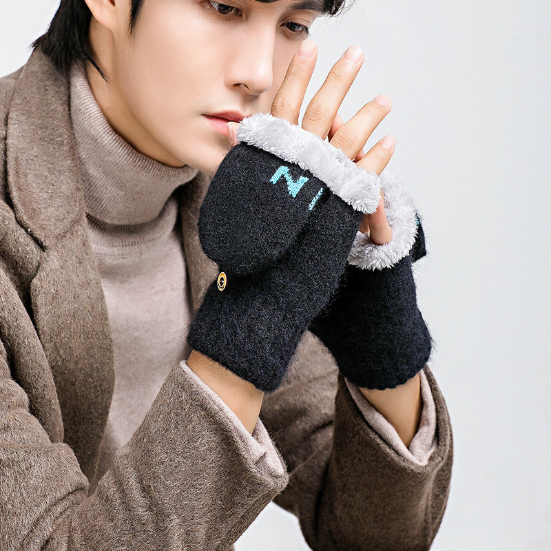 Мужские удерживающие тепло утепленные зимние перчатки для школьников и студентов, в корейском стиле, без пальцев