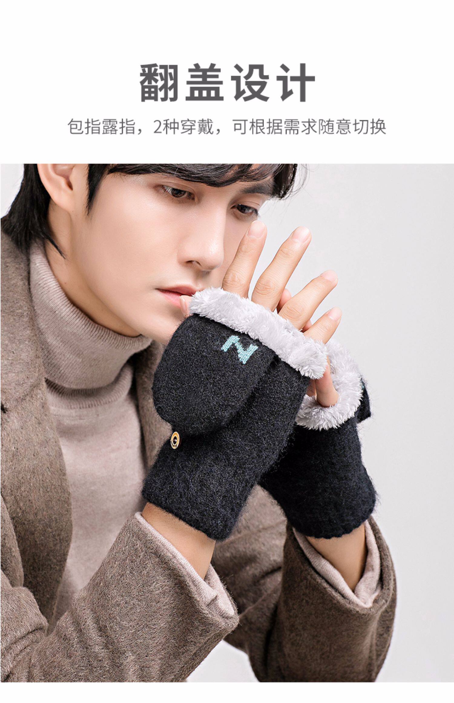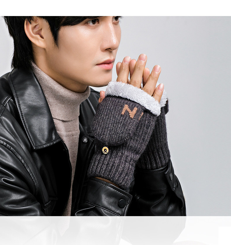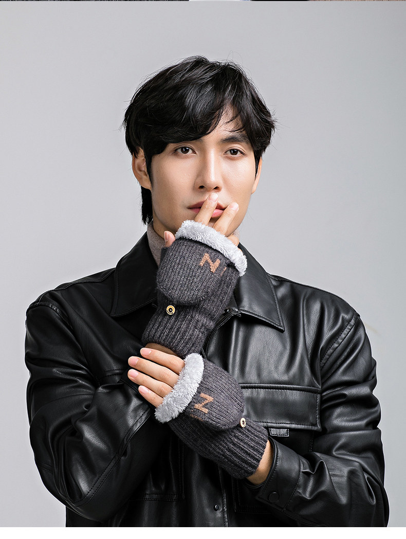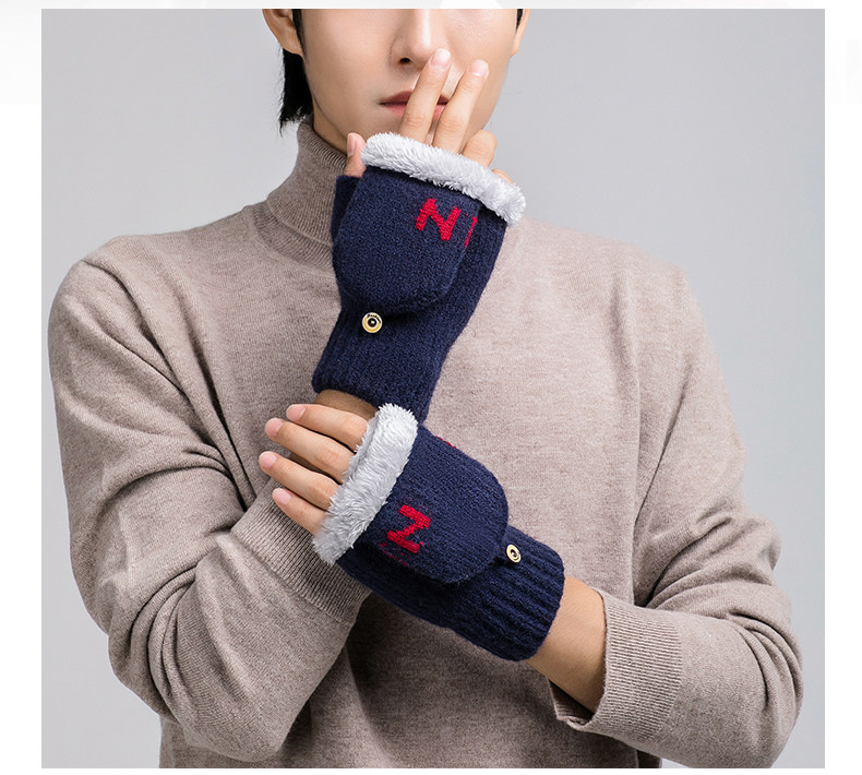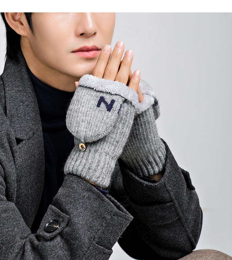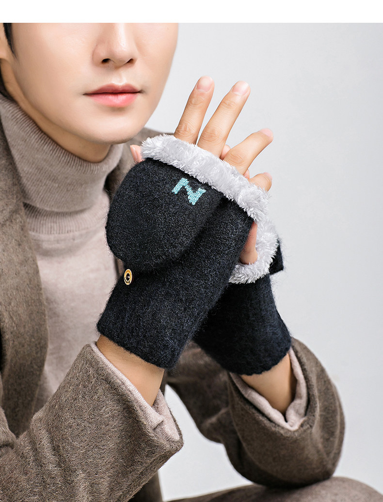 Мужские удерживающие тепло утепленные зимние перчатки для школьников и студентов, в корейском стиле, без пальцев