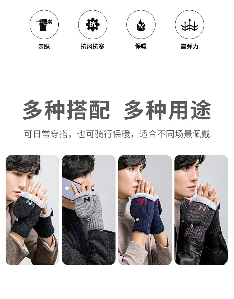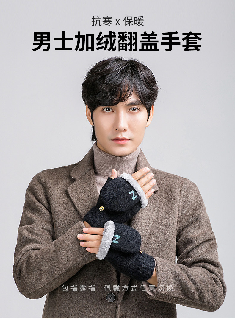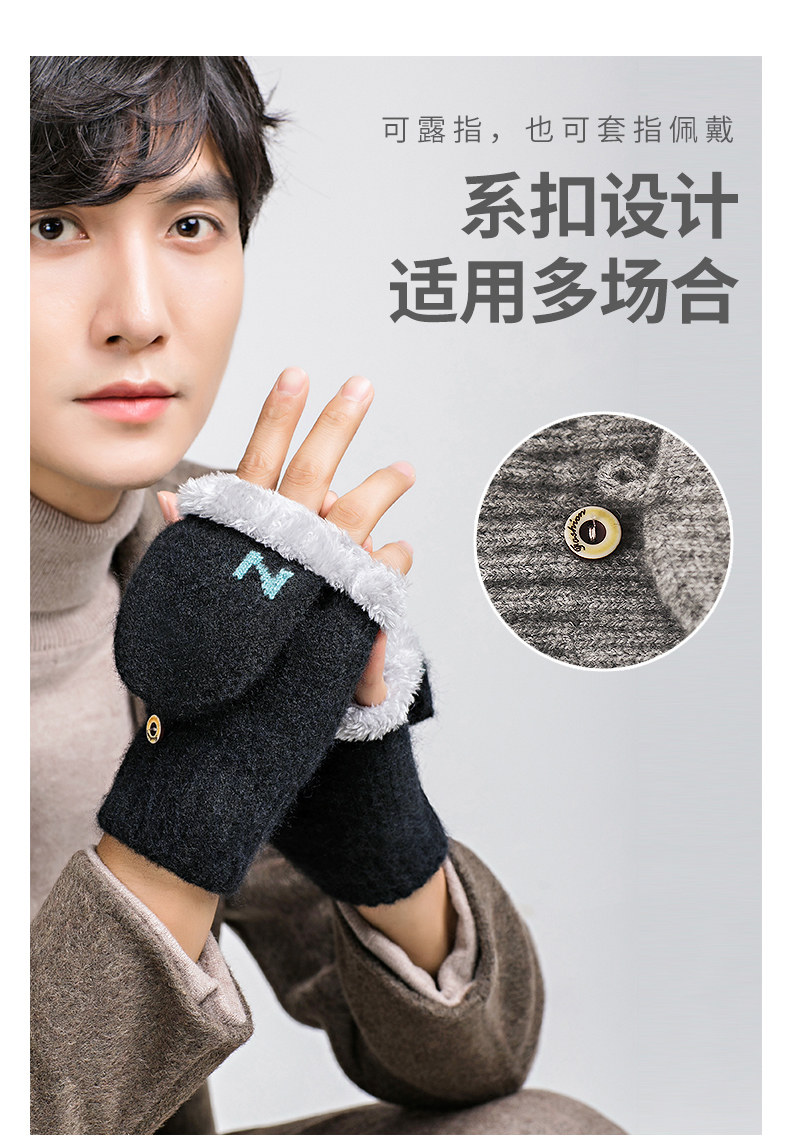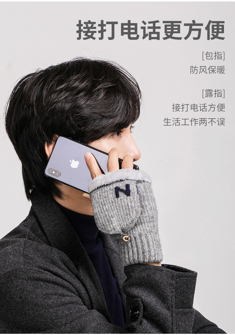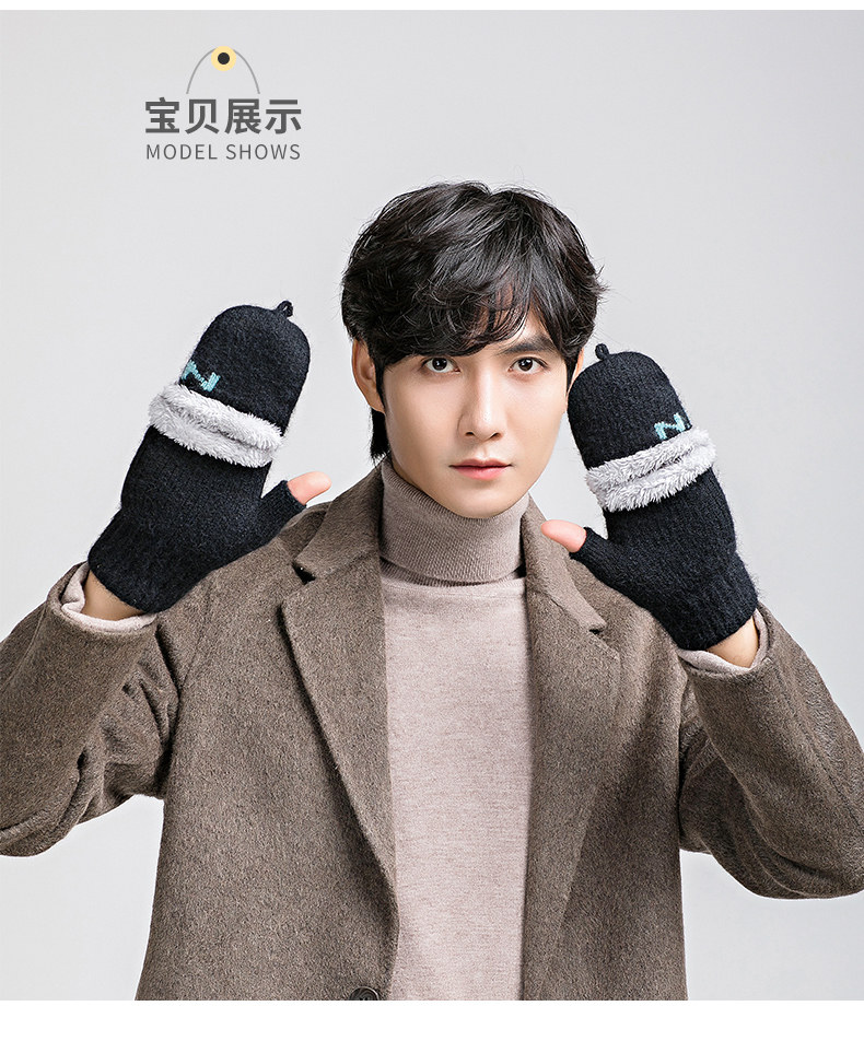 Мужские удерживающие тепло утепленные зимние перчатки для школьников и студентов, в корейском стиле, без пальцев