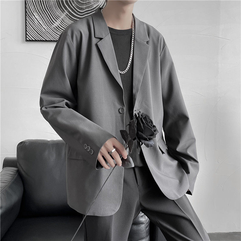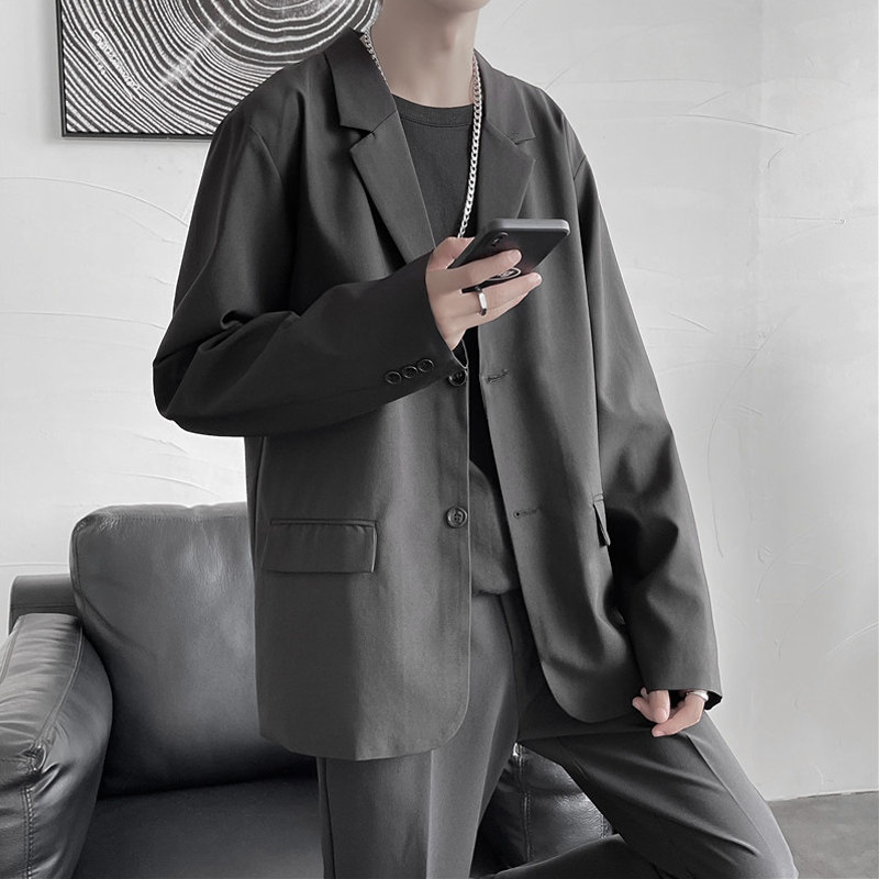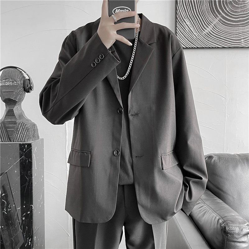 Осенняя мужская трендовая куртка, костюм, в корейском стиле, оверсайз, изысканный стиль