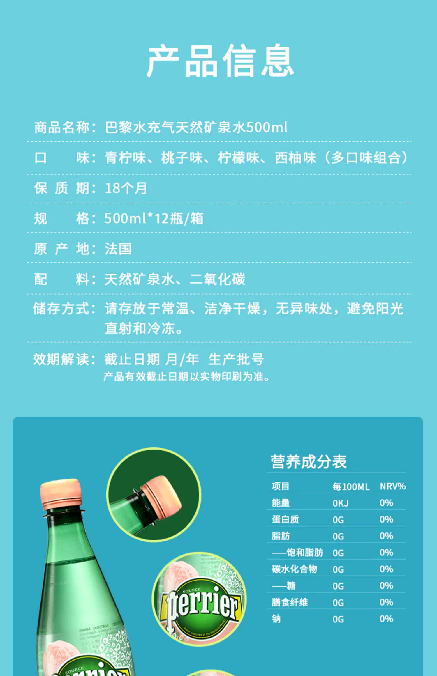 [618 Pre -sale Multi-flockened Comminate] Французская Perrier Paris Water 0 Сахар 0 Карта воздушная пузырьковая вода 500 мл*12
