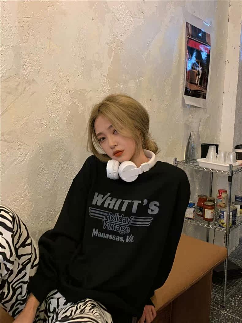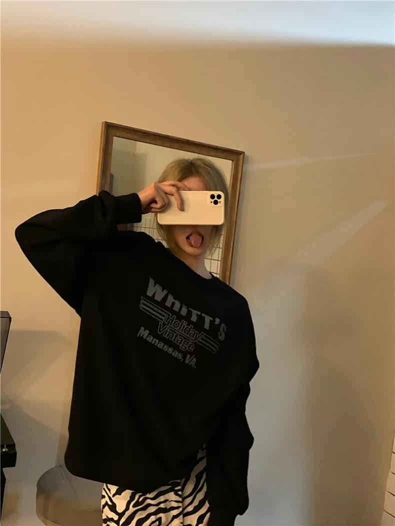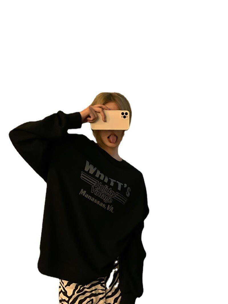 Tide, черный осенний тонкий свитшот с круглым воротником, модная куртка, подходит для подростков, в корейском стиле, оверсайз