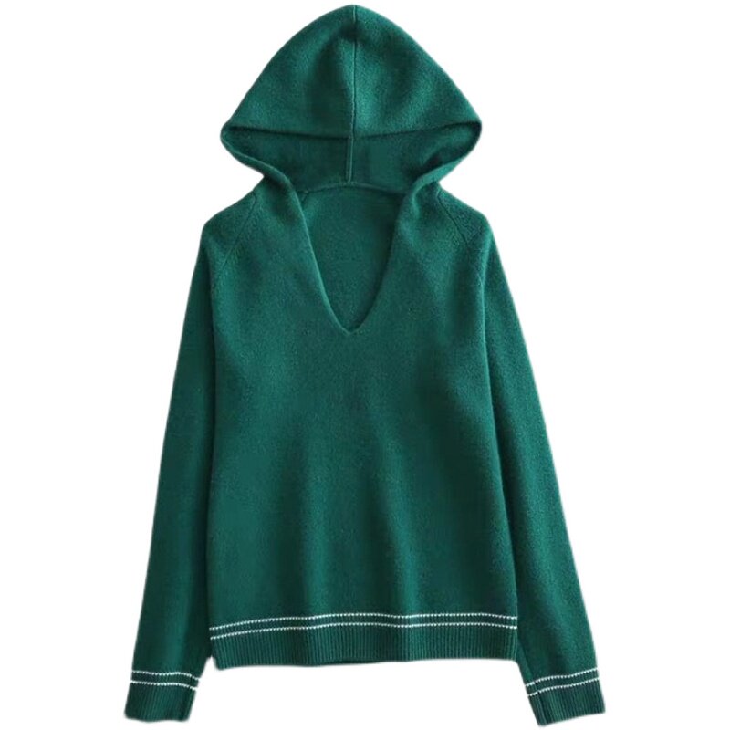 Кашемировый трикотажный свитер, толстовка с капюшоном с капюшоном, лонгслив, шерстяная рубашка, оверсайз