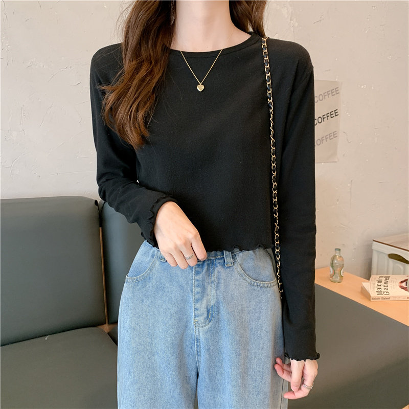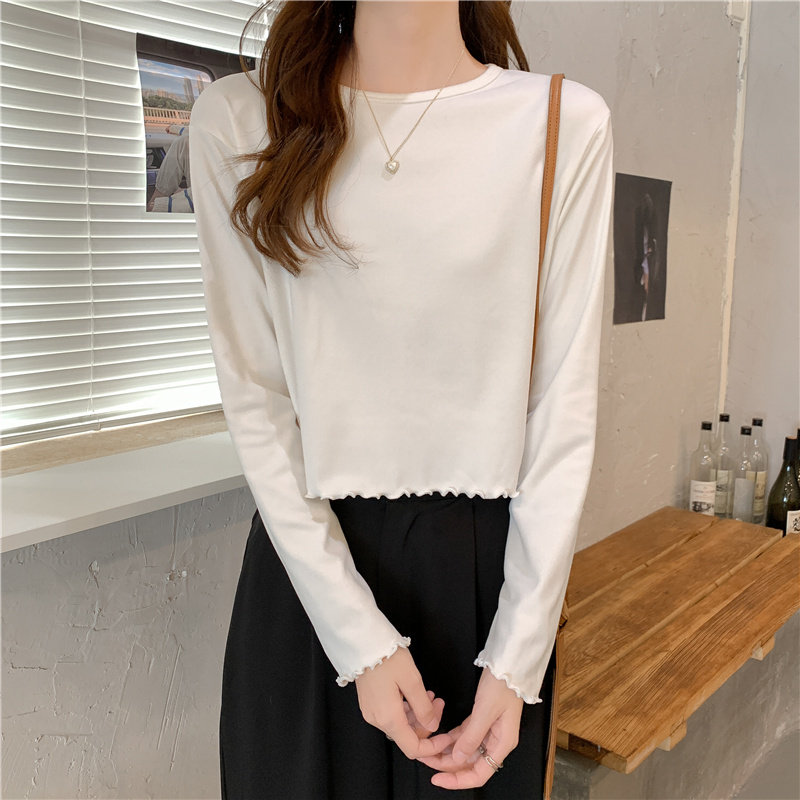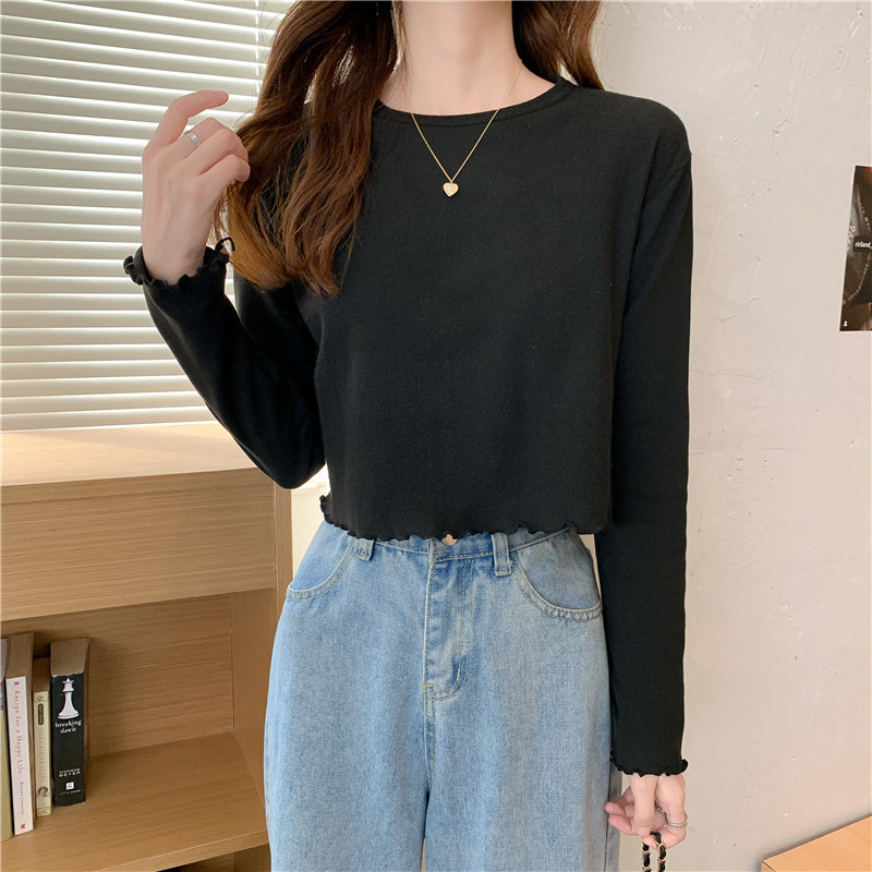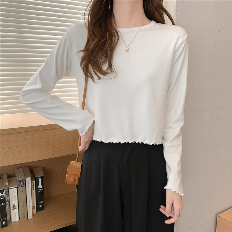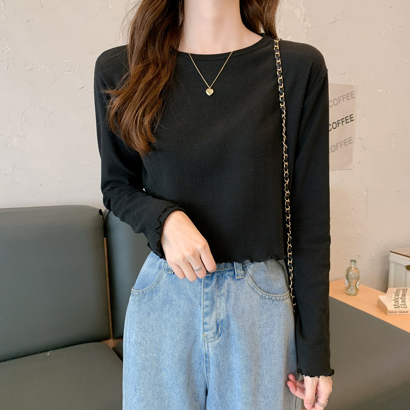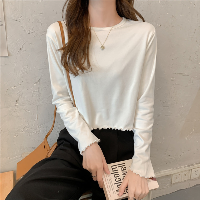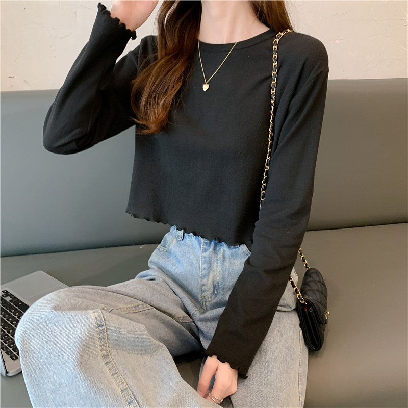 Весна и осень 2025 года, новая короткая версия футболки с грибковыми краями, женская рубашка с длинными рукавами в иностранном стиле, тонкая рубашка с внутренним верхом и низом на осень и зиму