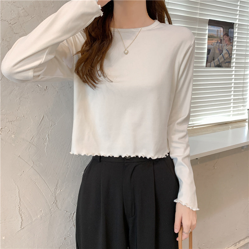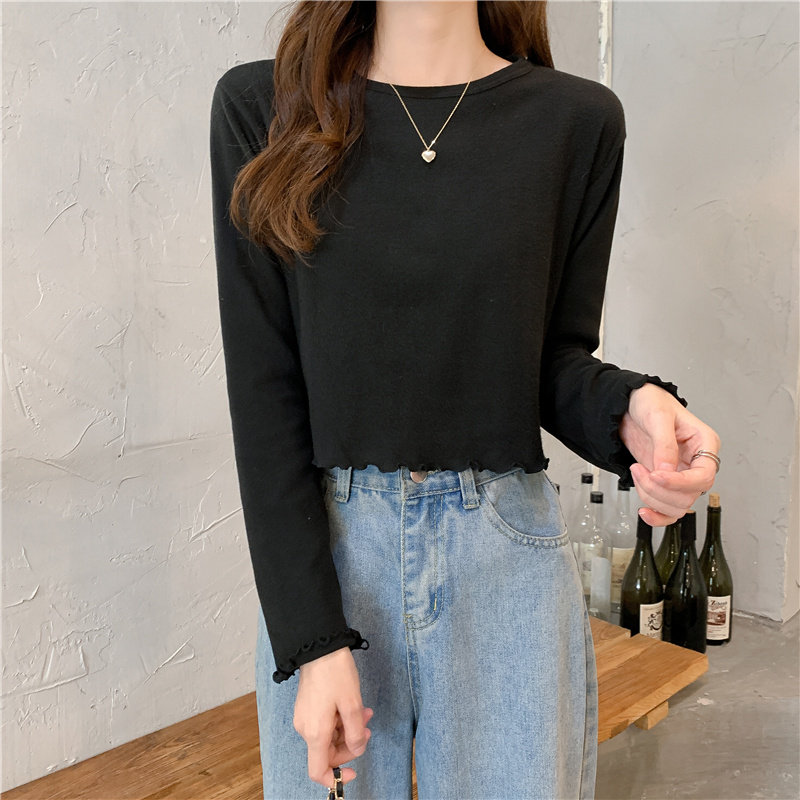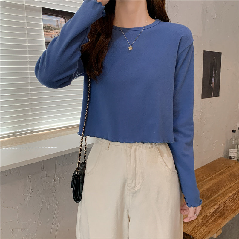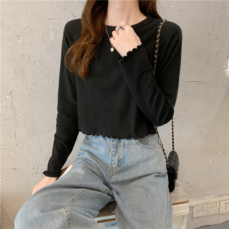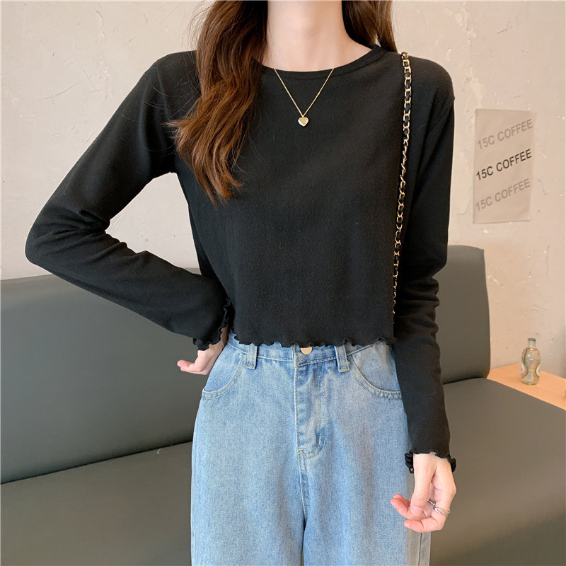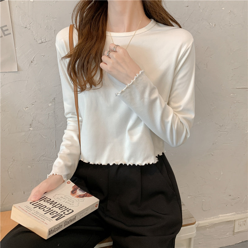 Весна и осень 2025 года, новая короткая версия футболки с грибковыми краями, женская рубашка с длинными рукавами в иностранном стиле, тонкая рубашка с внутренним верхом и низом на осень и зиму