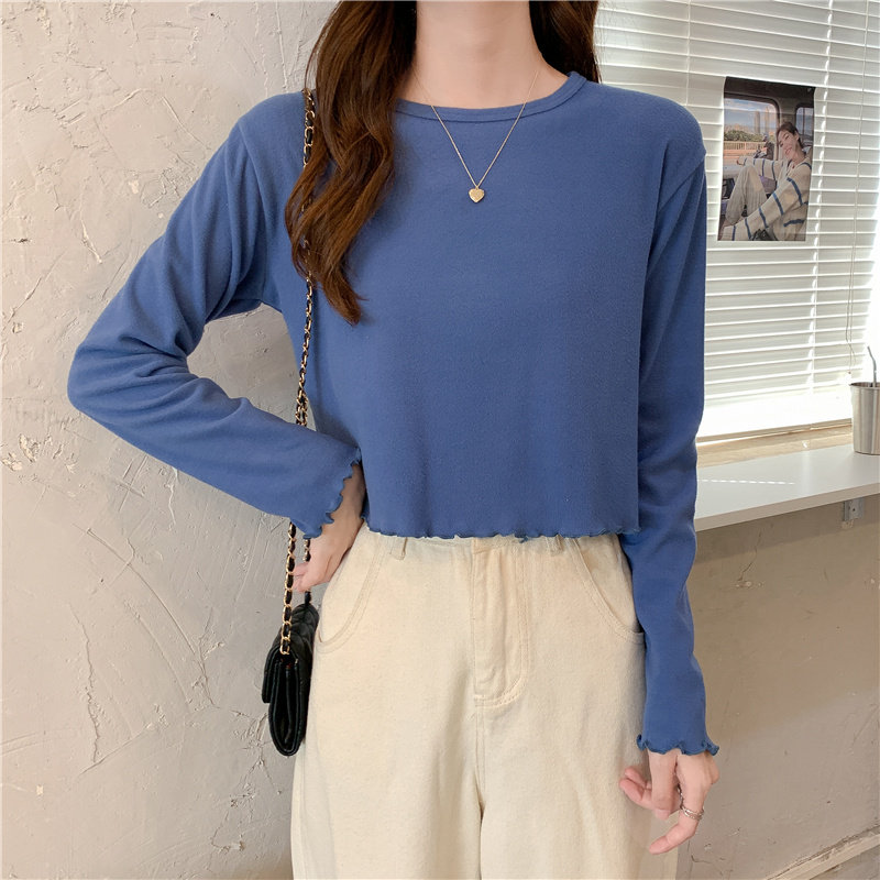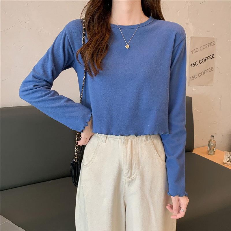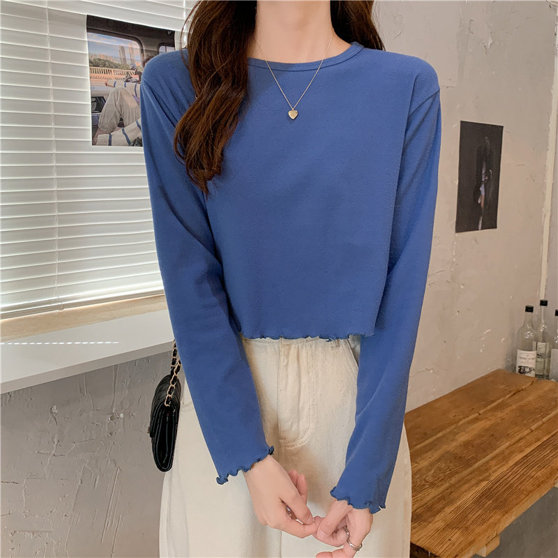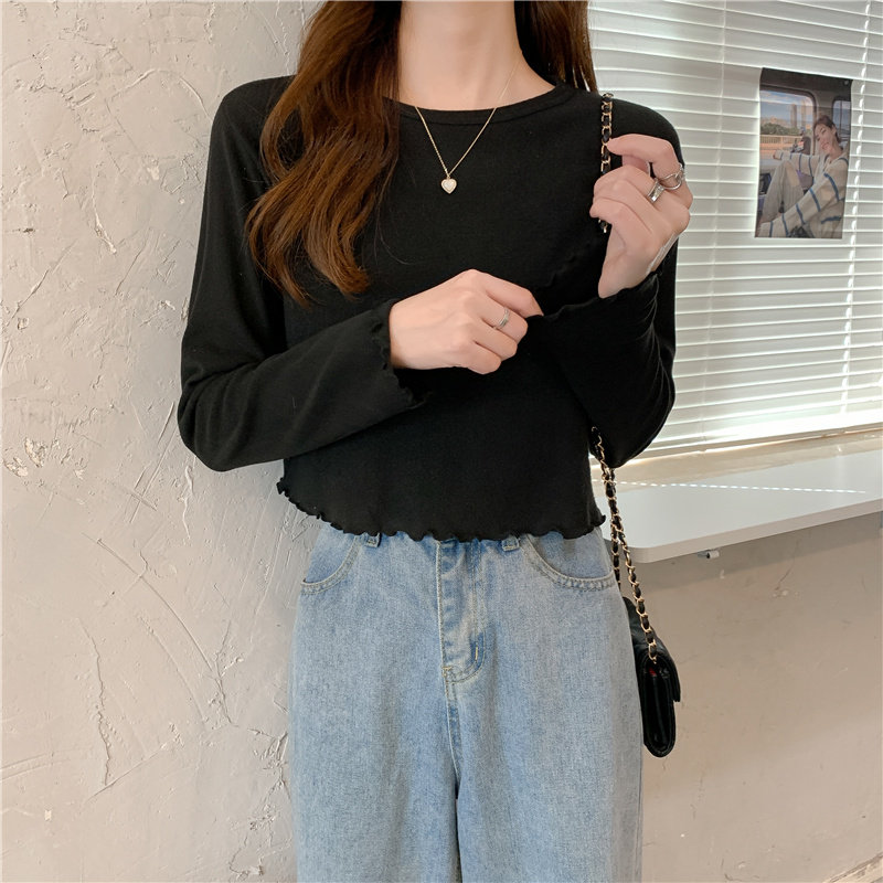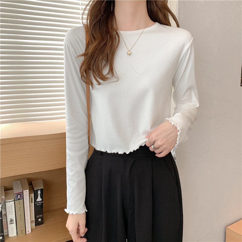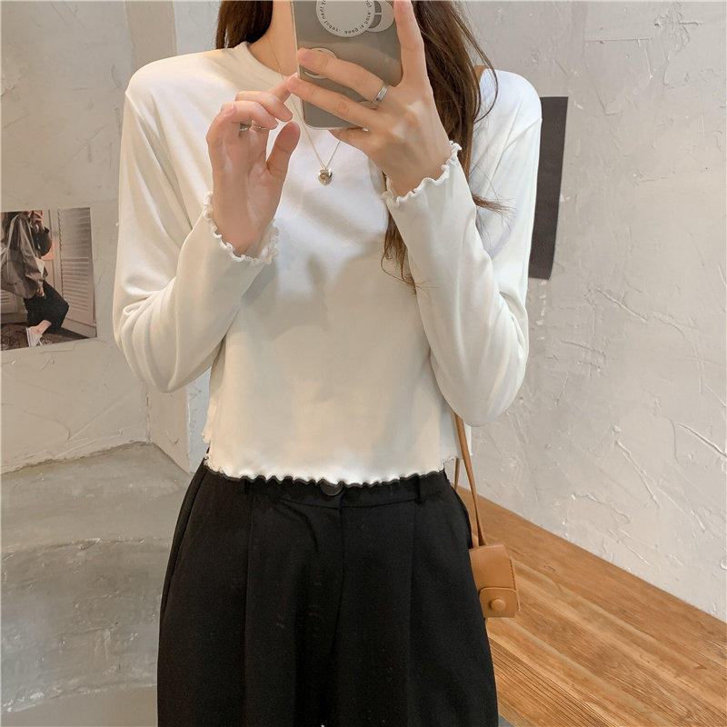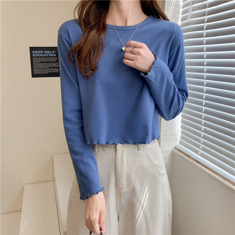 Весна и осень 2025 года, новая короткая версия футболки с грибковыми краями, женская рубашка с длинными рукавами в иностранном стиле, тонкая рубашка с внутренним верхом и низом на осень и зиму