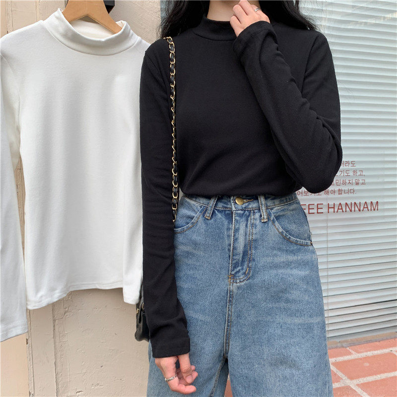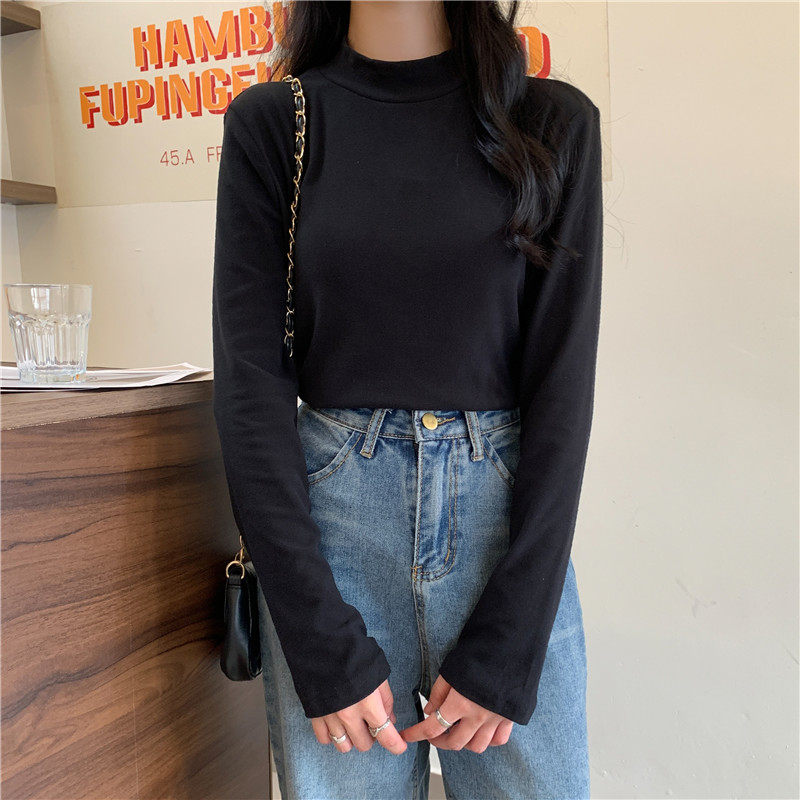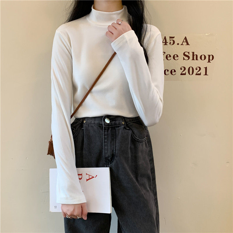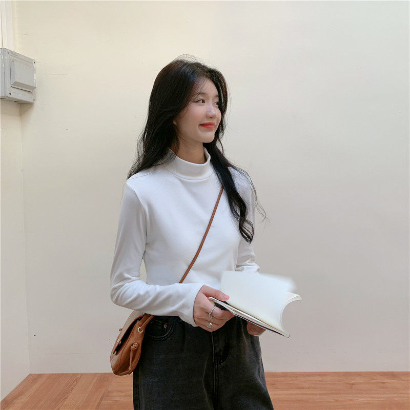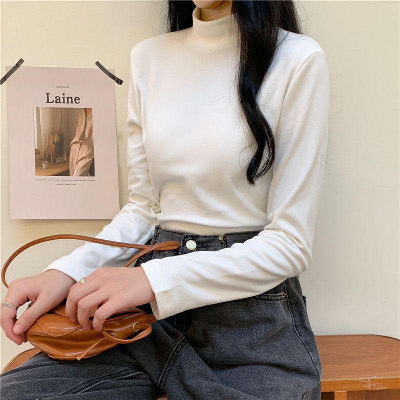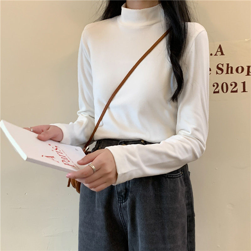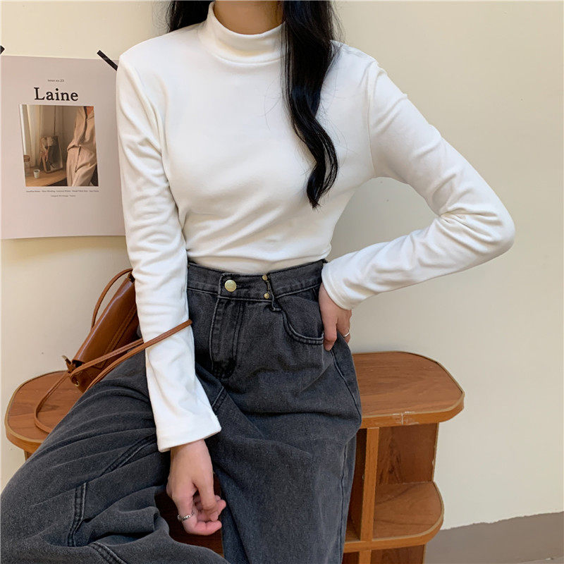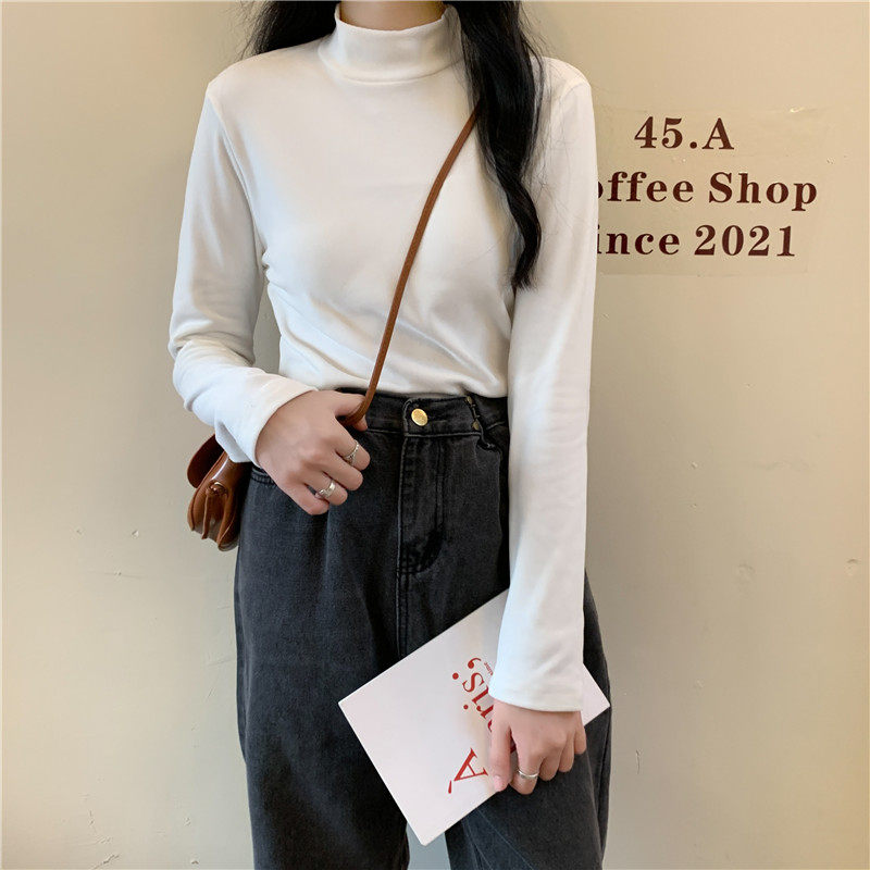 Бархатный базовый приятный телу лонгслив, в корейском стиле, коллекция 2022, высокий воротник, большой размер