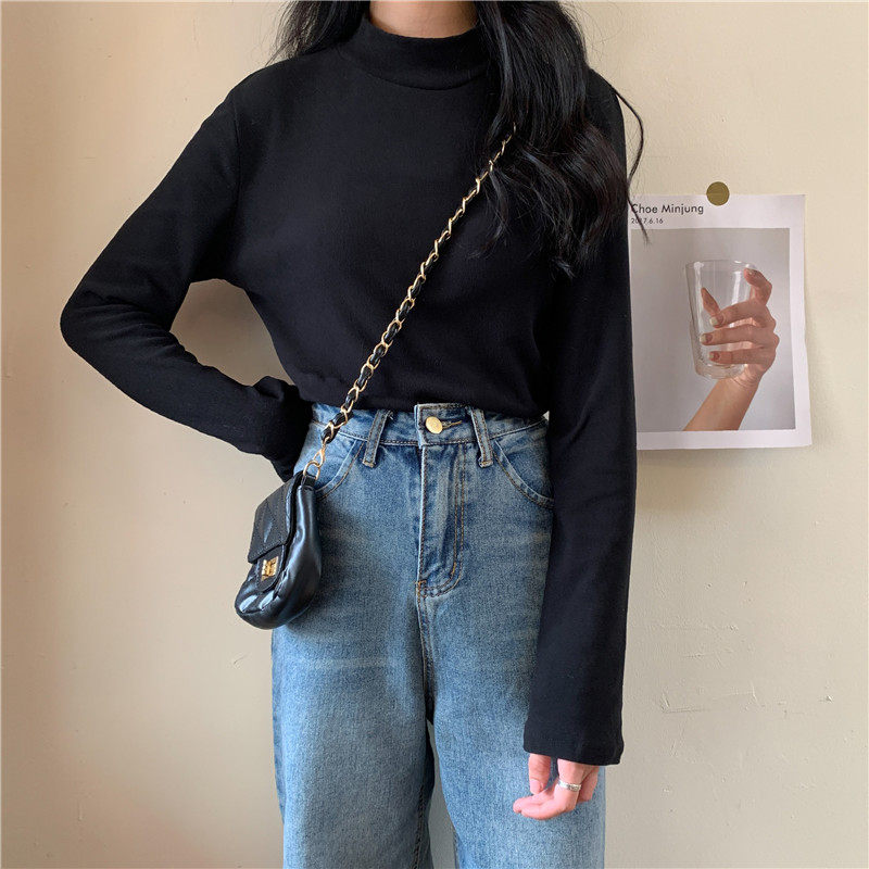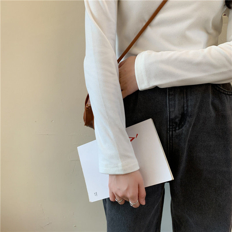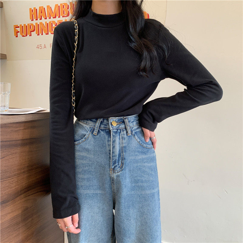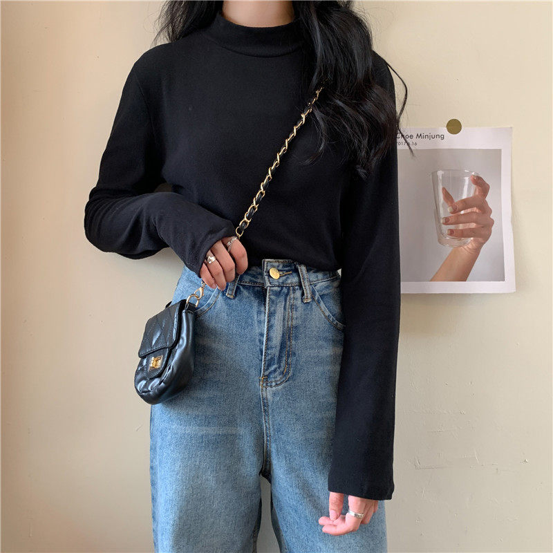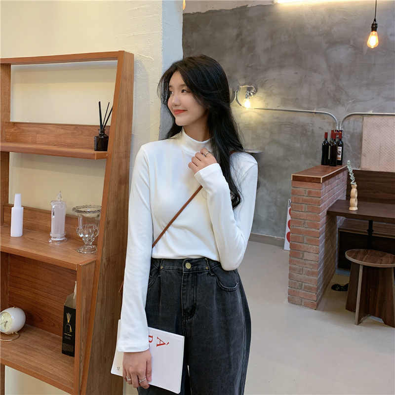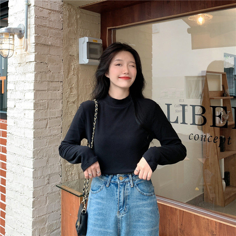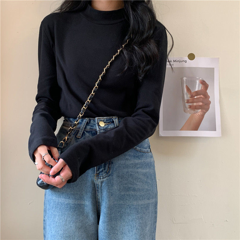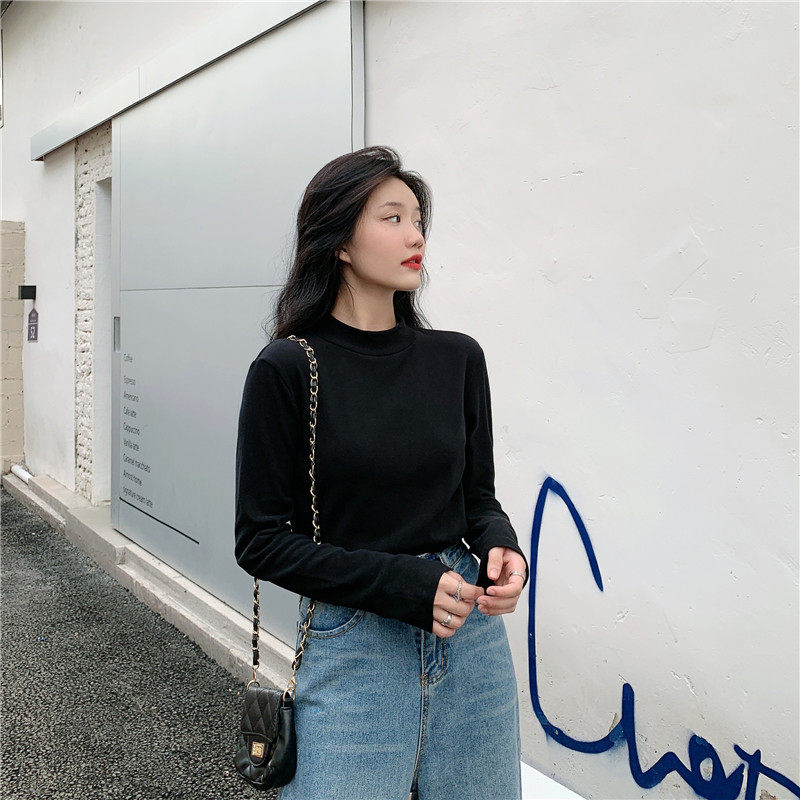 Бархатный базовый приятный телу лонгслив, в корейском стиле, коллекция 2022, высокий воротник, большой размер