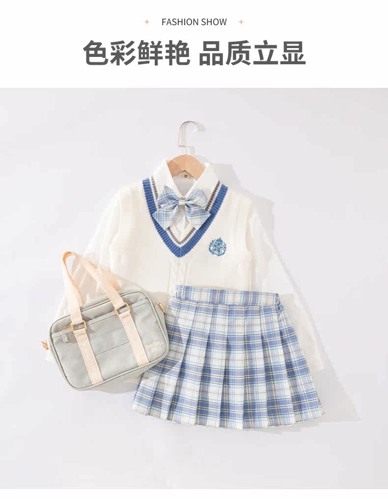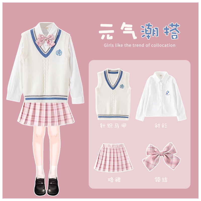 Осенний комплект, осенняя детская студенческая юбка в складку, жилет, коллекция 2021, 3 предмета, популярно в интернете