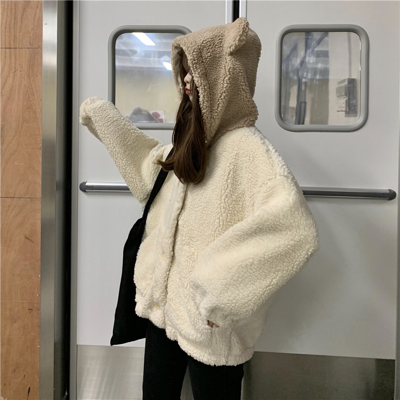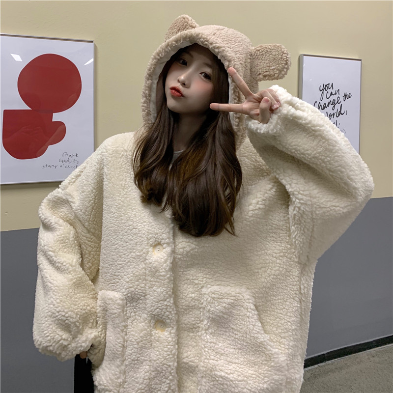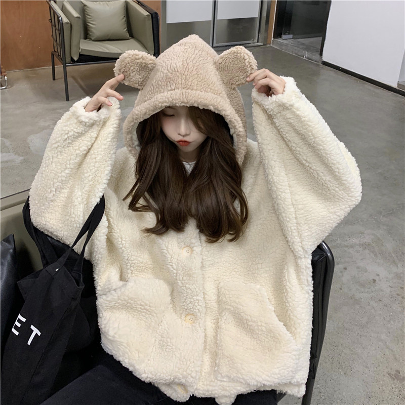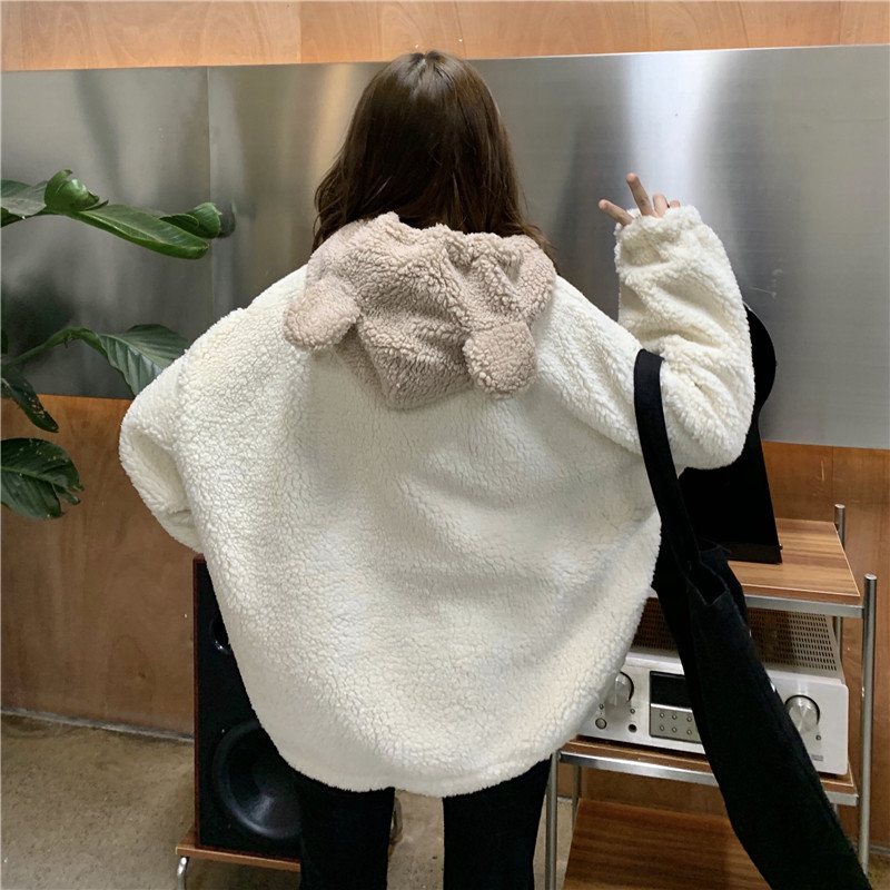 Милая демисезонная флисовая куртка с капюшоном, 2021 года, увеличенная толщина, оверсайз