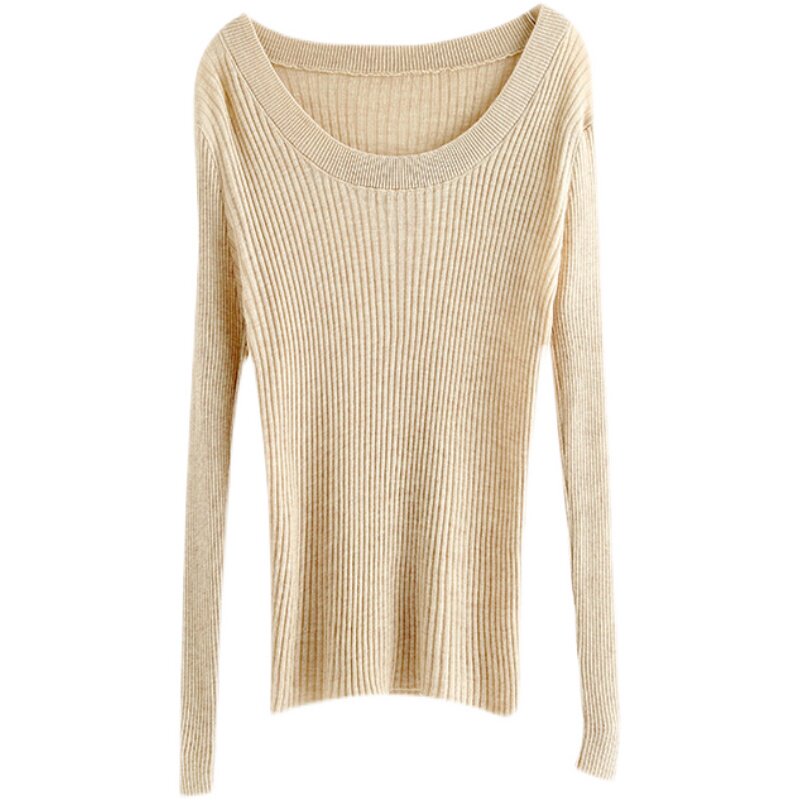 Осенний трикотажный модный шерстяной базовый приятный телу свитер с круглым воротником, в западном стиле, облегающий крой, высокий воротник