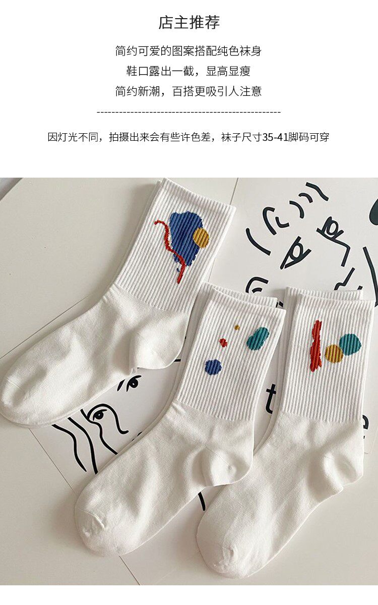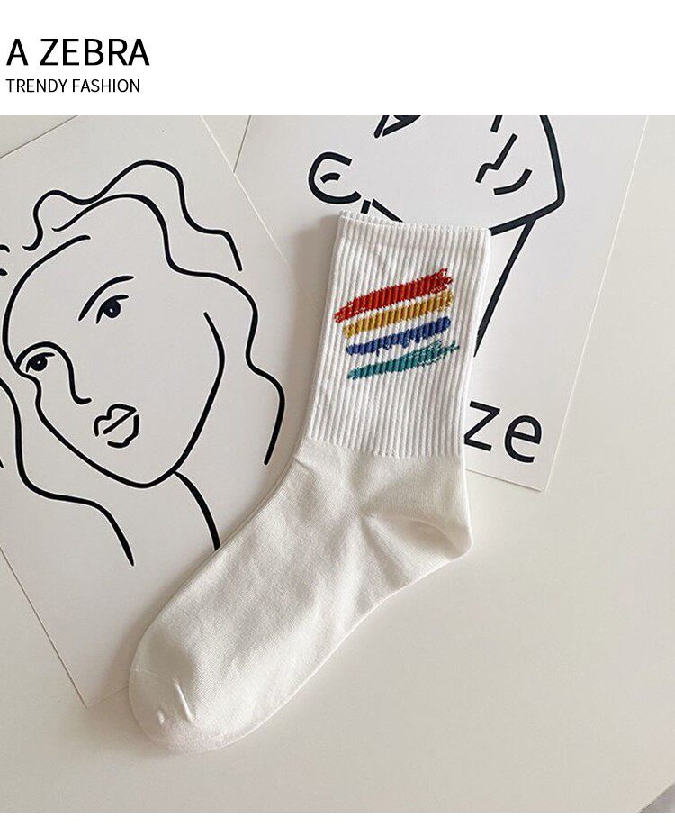 Tide, белые осенние спортивные носки, в корейском стиле, средней длины