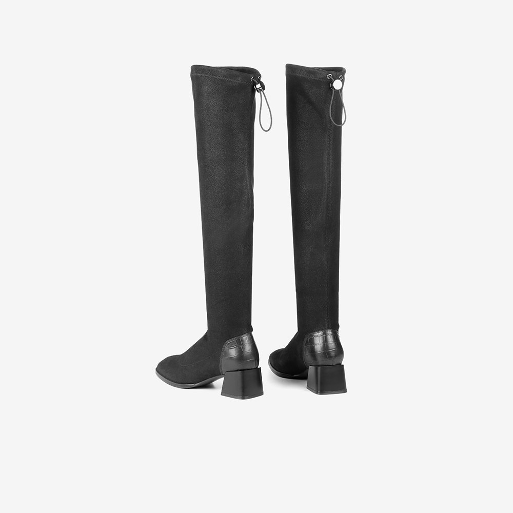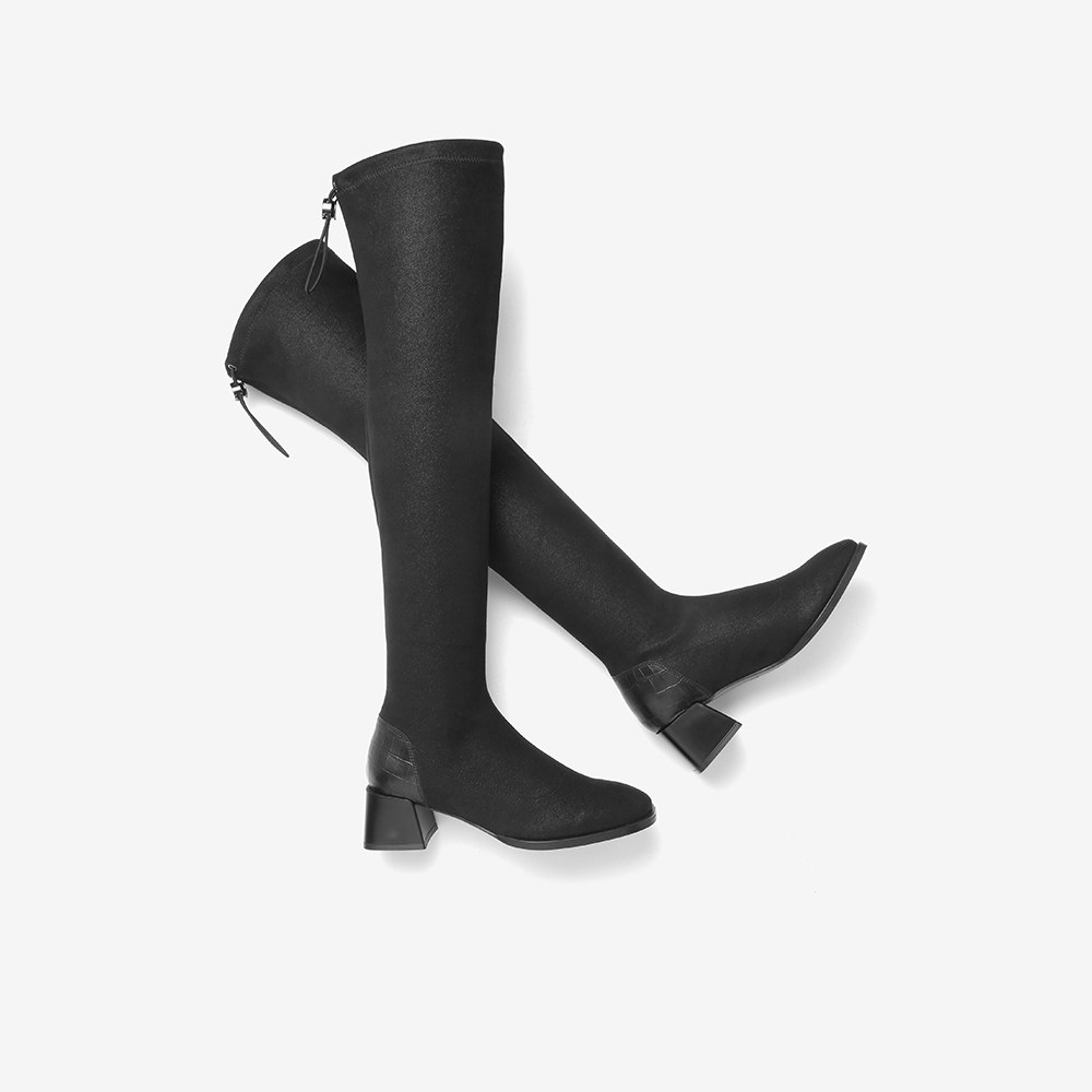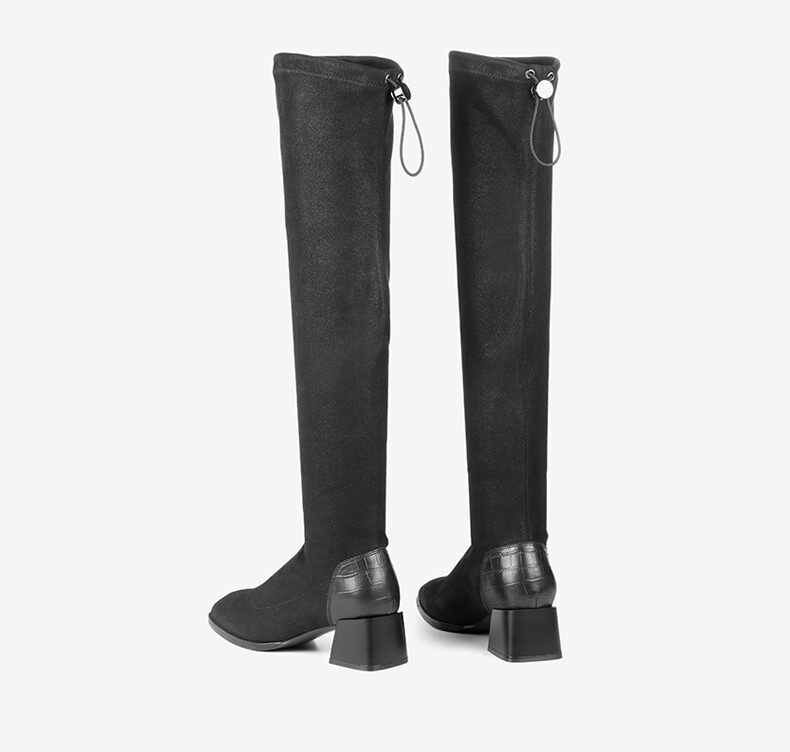 Высокие эластичные демисезонные флисовые высокие сапоги, по фигуре