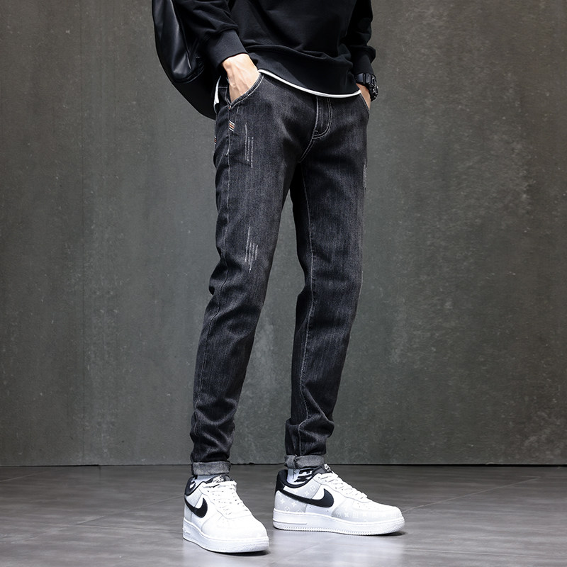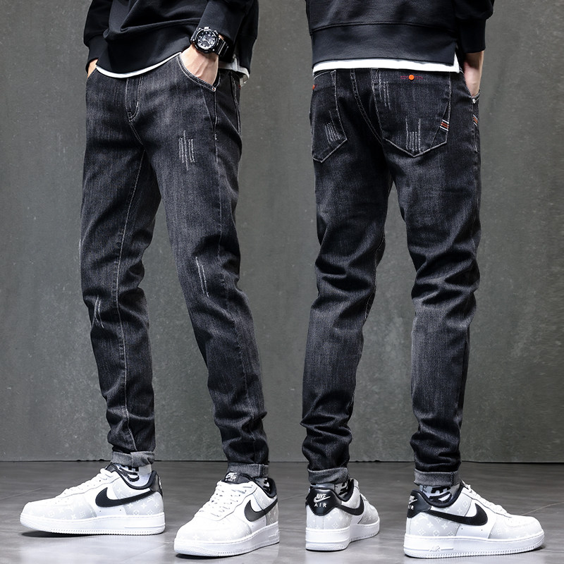 Демисезонные джинсы для отдыха, черные трендовые штаны, коллекция 2021, облегающий крой