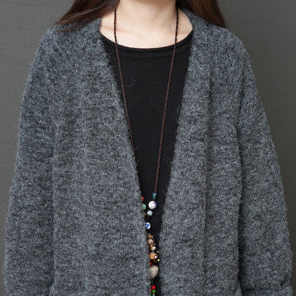 Длинный кардиган, свитер, лонгслив для отдыха, цветная куртка, осенний плащ, средней длины, оверсайз, по фигуре, V-образный вырез, большой размер