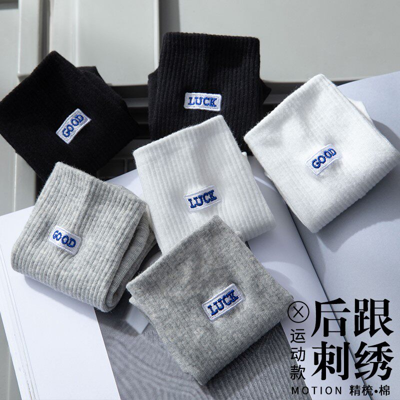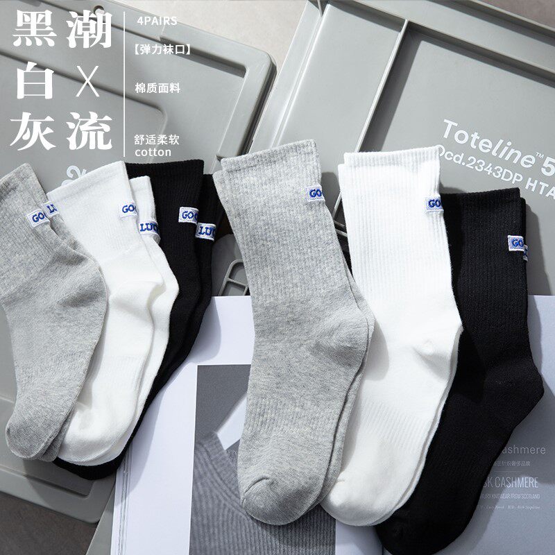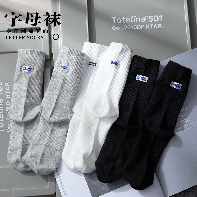 Tide, черные осенние носки, спортивные хлопковые демисезонные белые гольфы