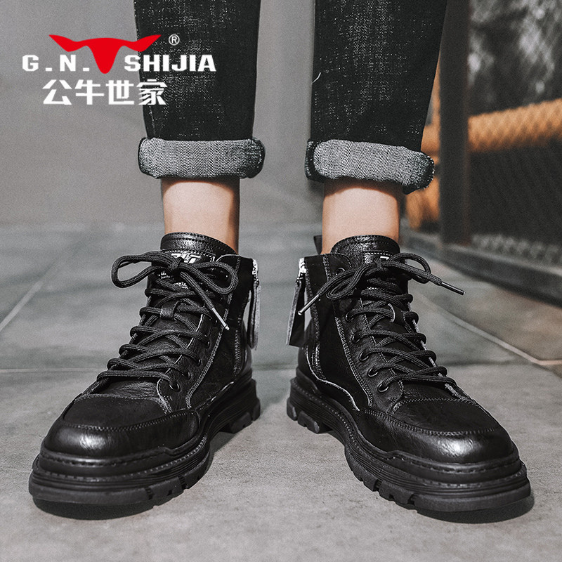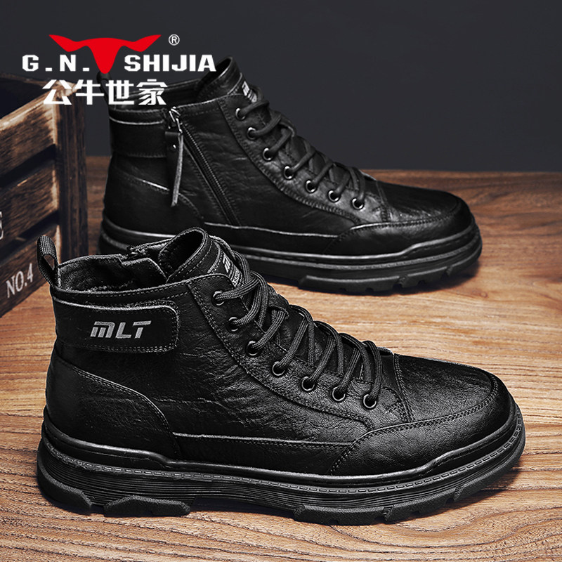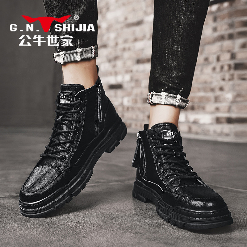Martens, мужская зимняя обувь, высокие трендовые короткие сапоги для кожаной обуви в английском стиле для отдыха, из натуральной кожи