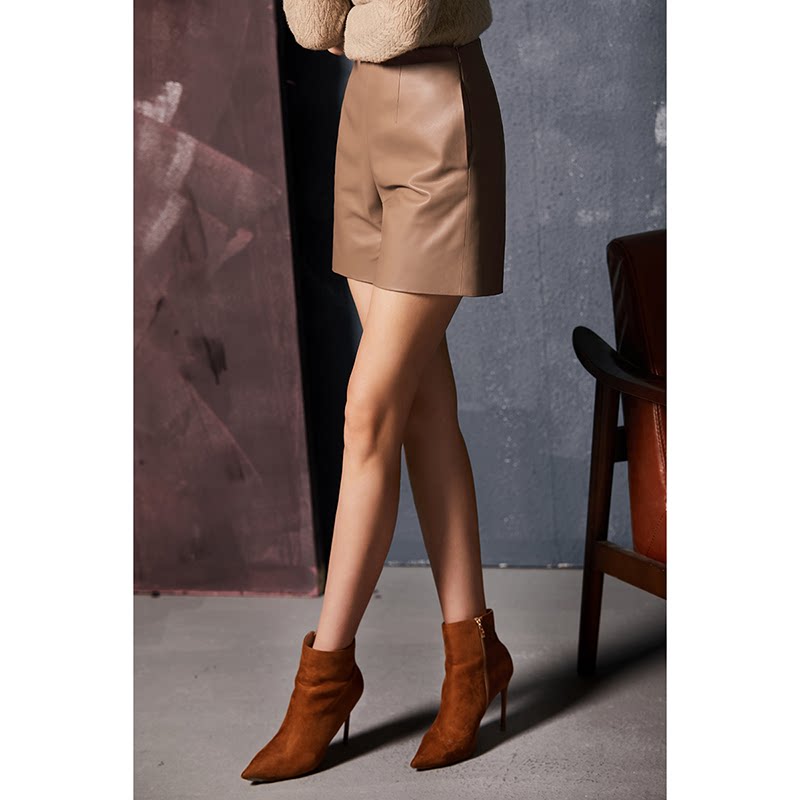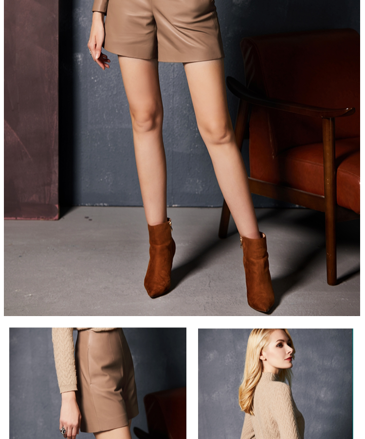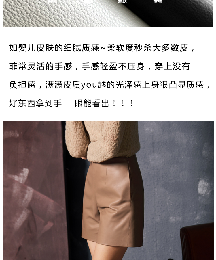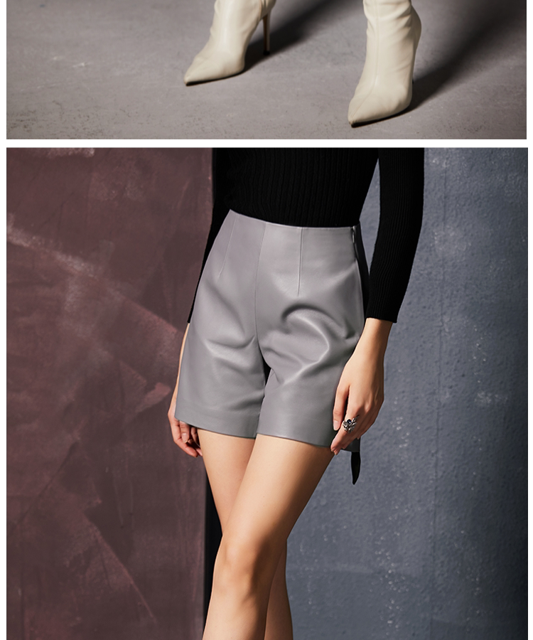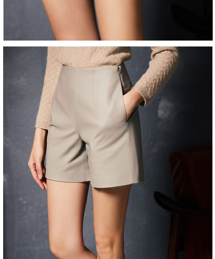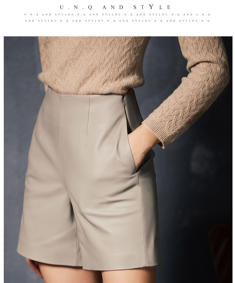 UNQ высококачественные простые кожаные шорты из мягкой овчины однотонного цвета, универсальные тонкие кожаные шорты со средней высокой талией для женщин