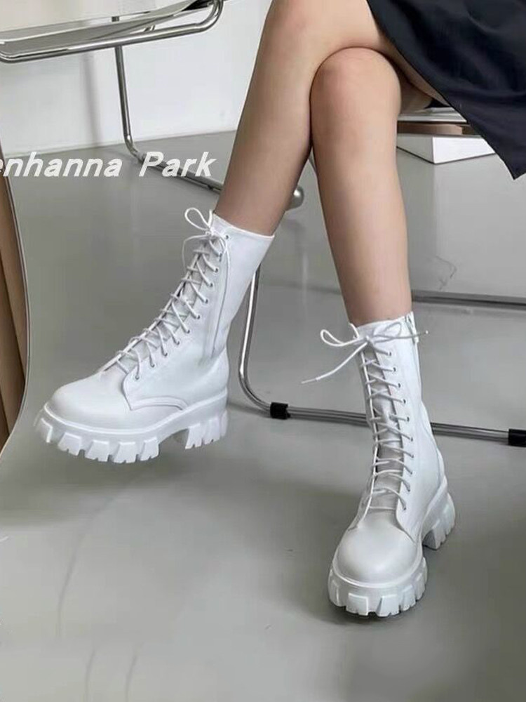 Martens, демисезонные белые ботинки в английском стиле, короткие сапоги, Гонконг, в британском стиле, 2023 года, средней длины