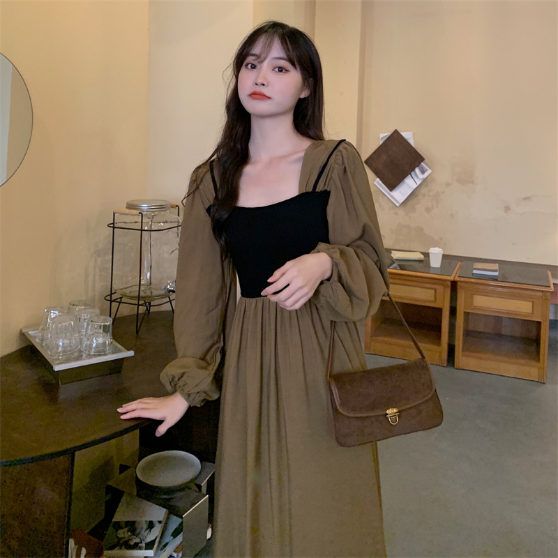 Комплект, лонгслив, осеннее платье, дизайнерская длинная юбка, большой размер, квадратный вырез, коллекция 2022, французский стиль