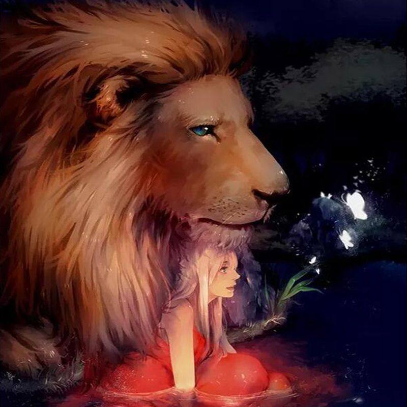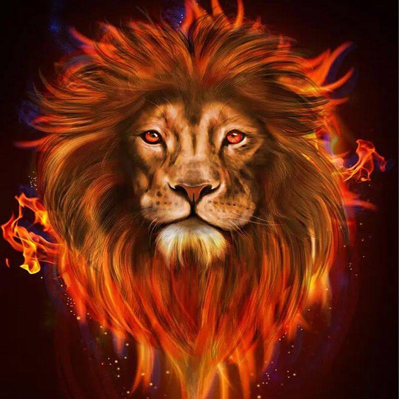 DIY Цифровой масляной живопись, окрашивая пара, льва и ребенка, ревущие к небо Fierce Lion украшение дома новый стиль