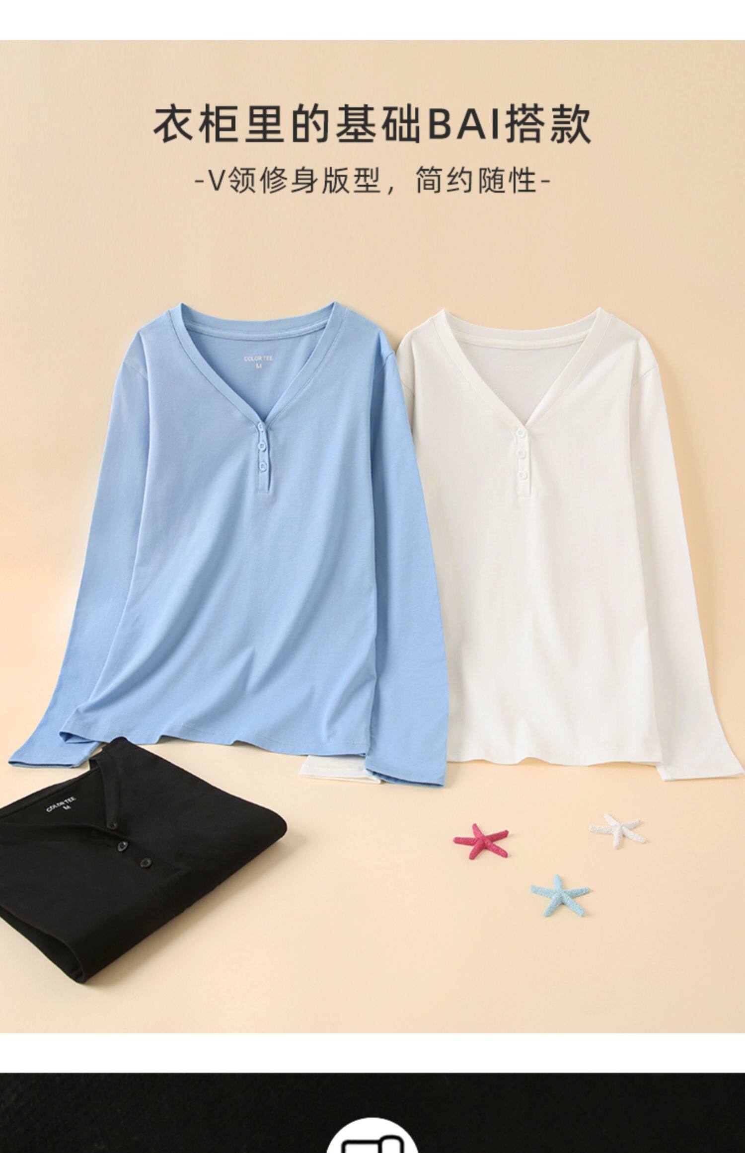 Хлопковый осенний цветной базовый приятный телу черный лонгслив, в корейском стиле, V-образный вырез