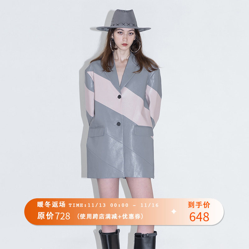 Оригинальный осенний дизайнерский пиджак классического кроя, свободный крой, тренд сезона, яркий броский стиль