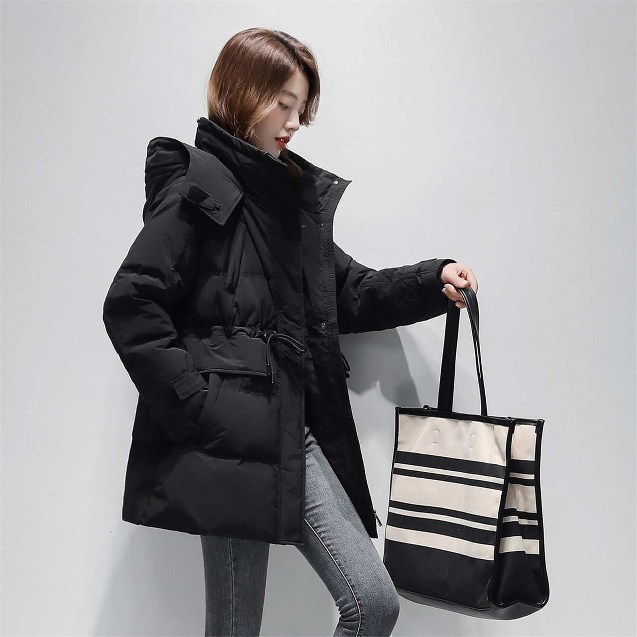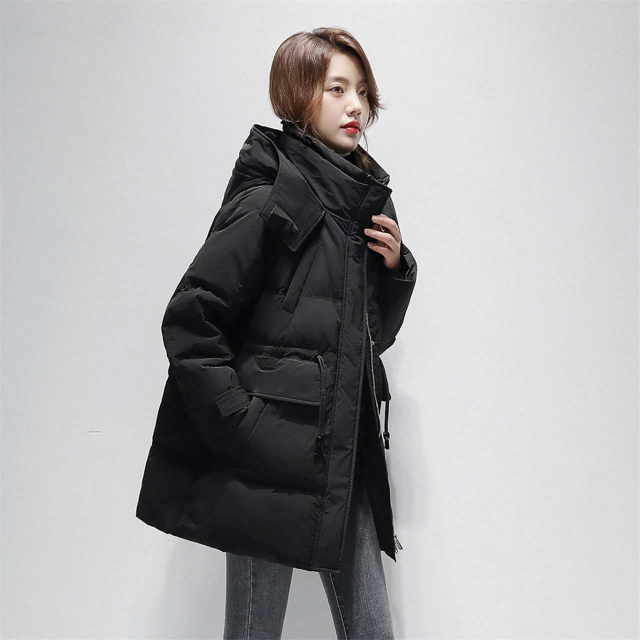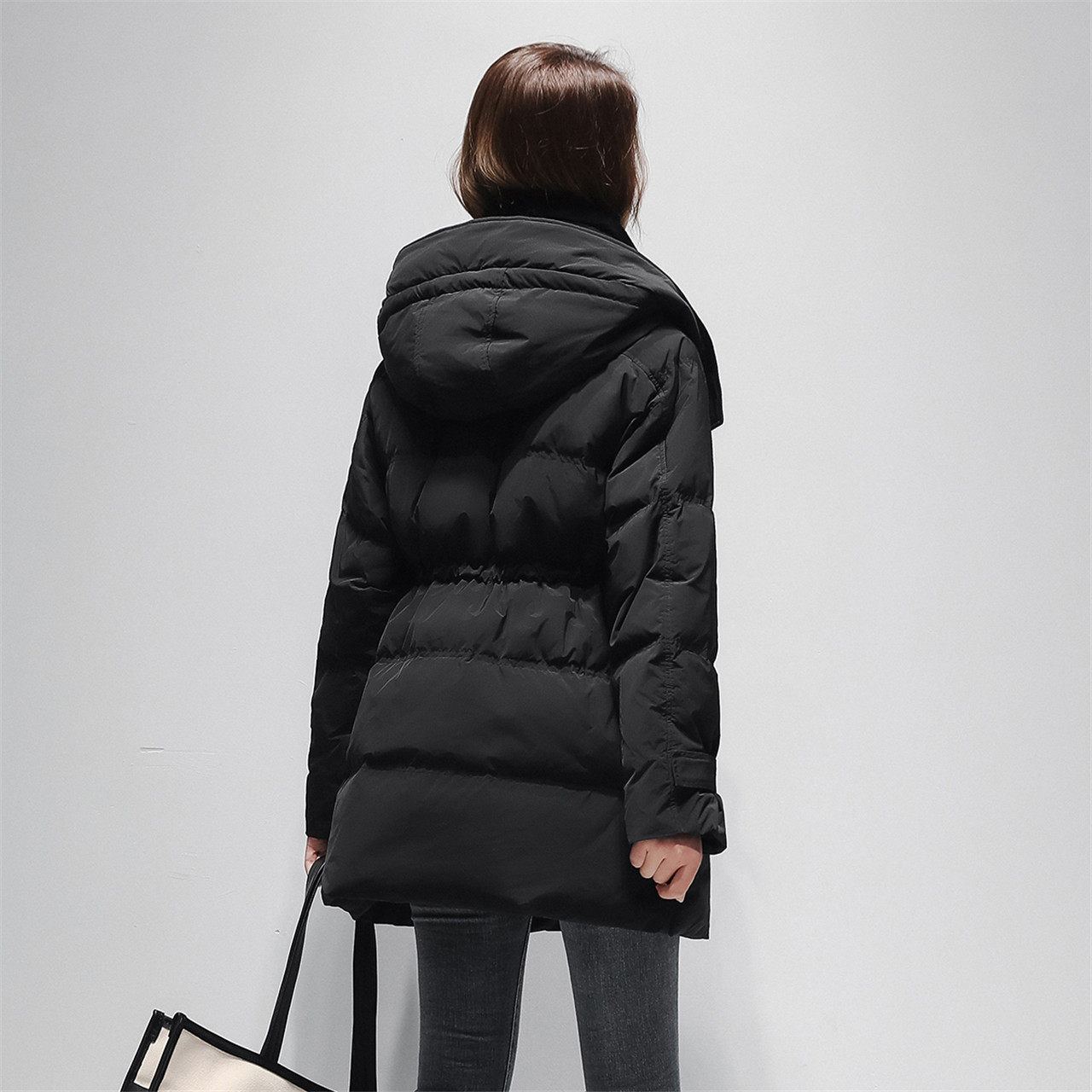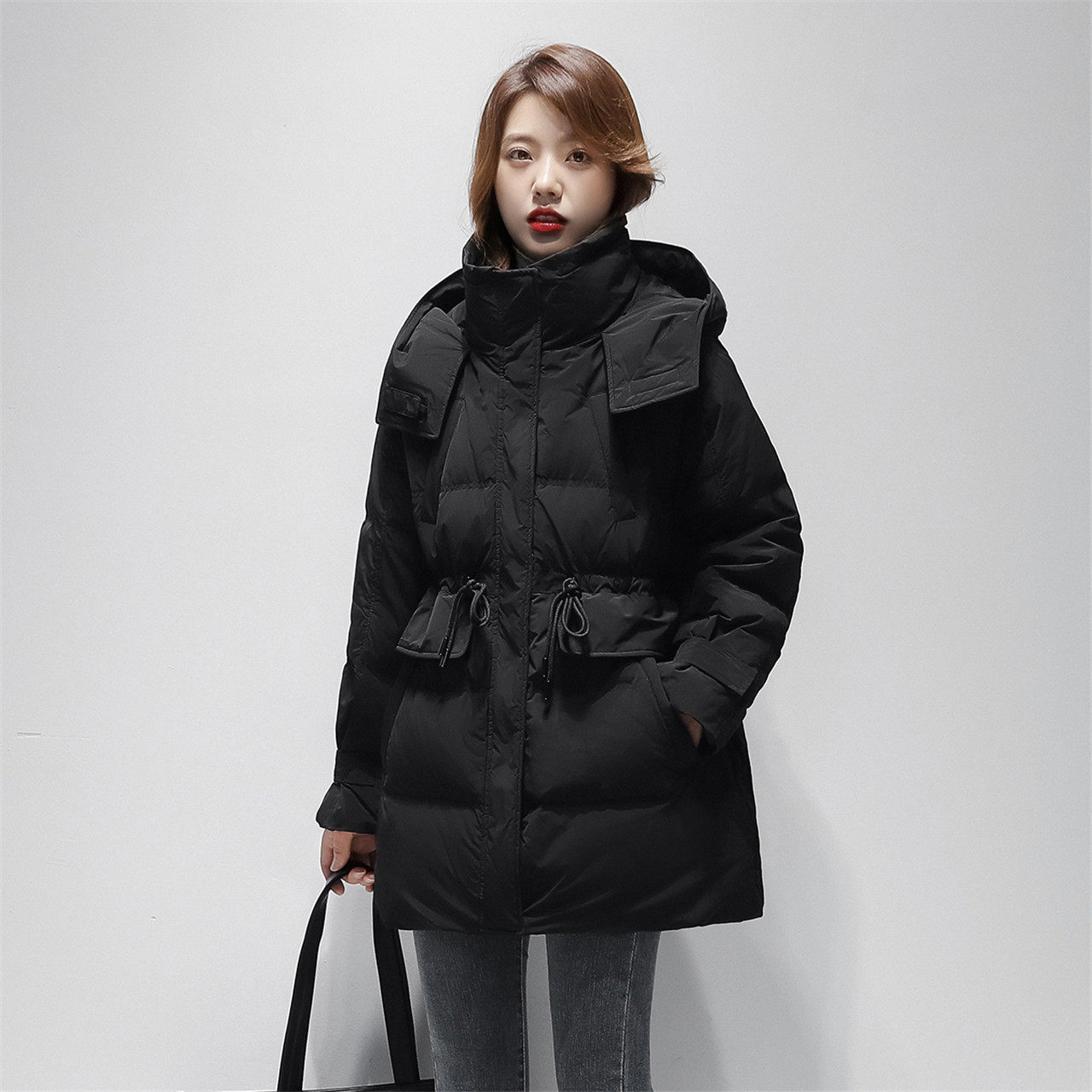 Демисезонный модный удерживающий тепло комфортный длинный мягкий пуховик с капюшоном, коллекция 2021, средней длины