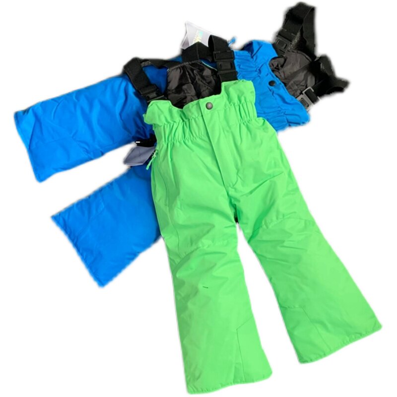 Детские зимние ветрозащитные водонепроницаемые утепленные подтяжки подходит для мужчин и женщин, лыжные штаны