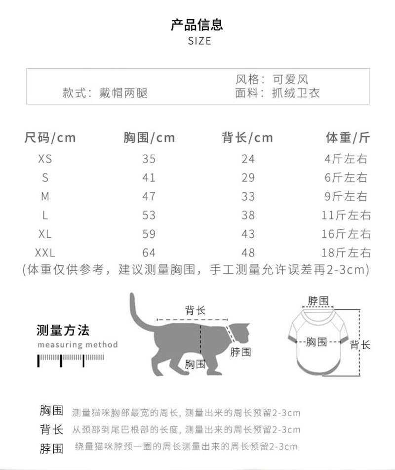 | Размер: | Xs (2-4 кот), S (4-6 кот), М (6-9 кот), L (9-12 кот), XL (12-18 Catties), 2xl (18-25 Catties) |