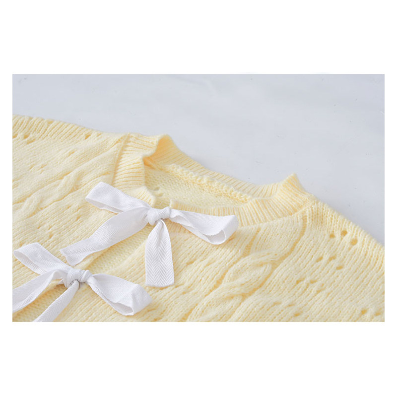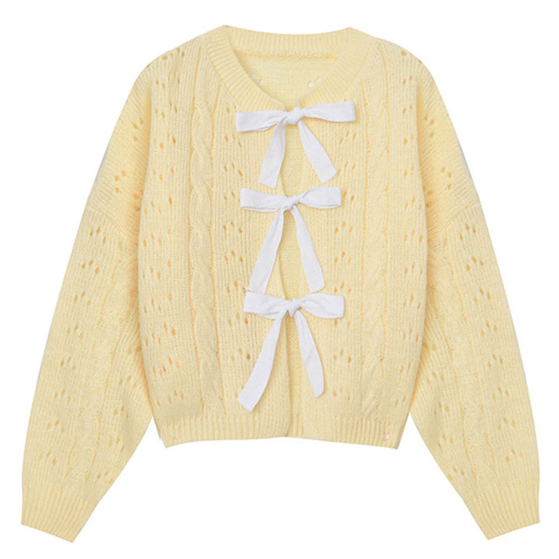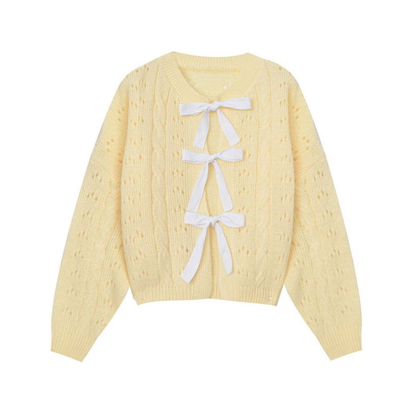 Желтый осенний кардиган с бантиком, милый свитер, в корейском стиле
