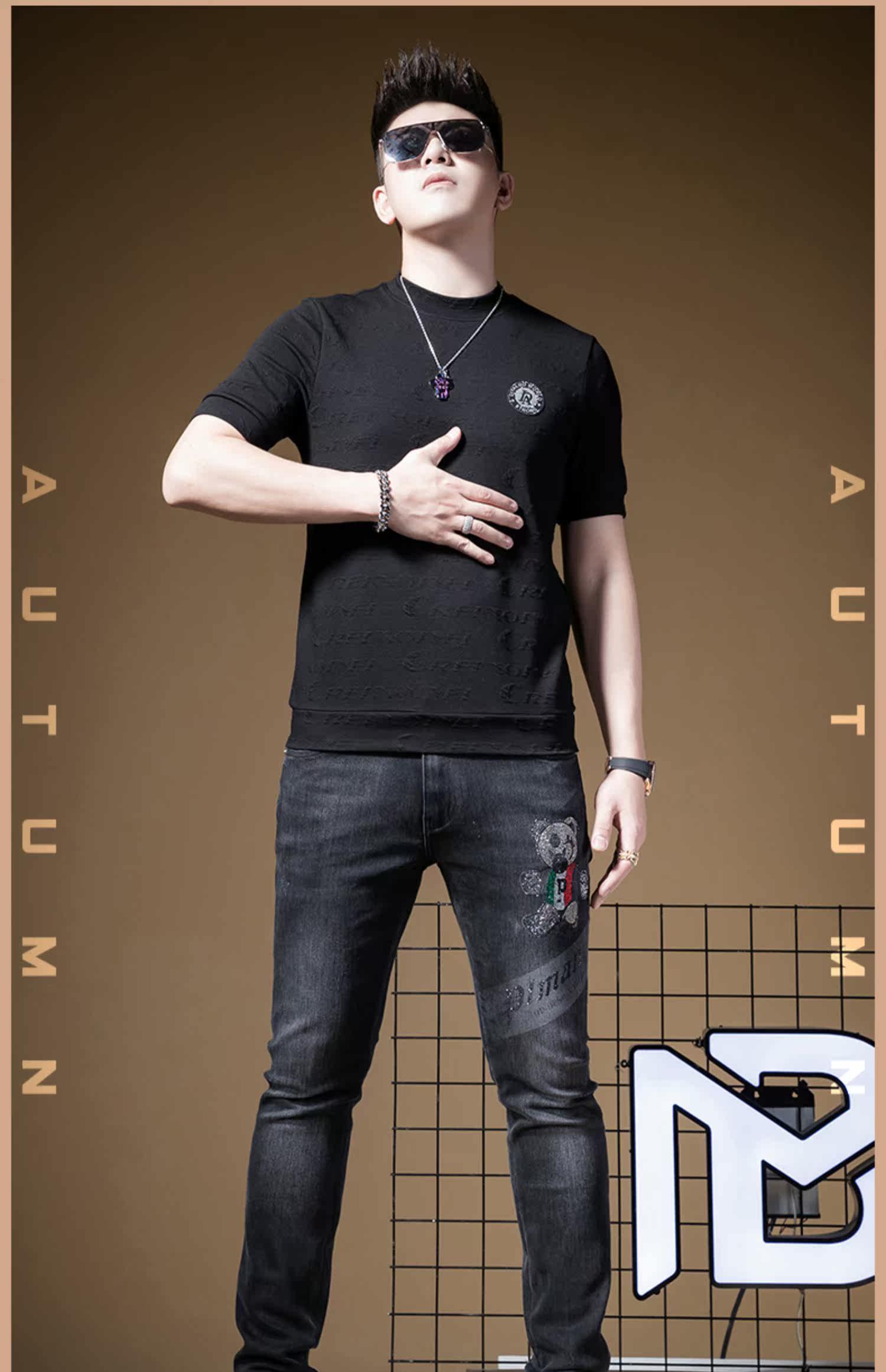 Tide, мужская демисезонная элитная базовая приятная телу толстовка с круглым воротником, короткий рукав