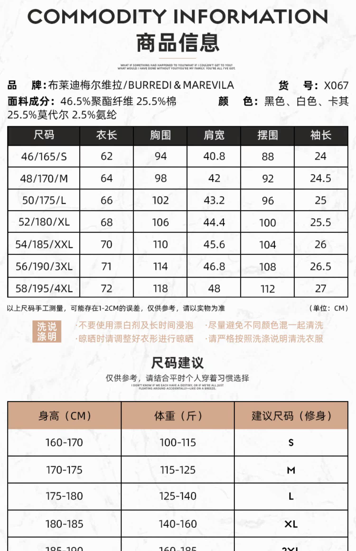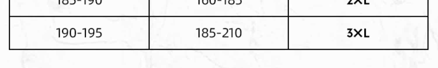 - 56/XXXL/190 46/S/165 54/XXL/185 52/XL/180