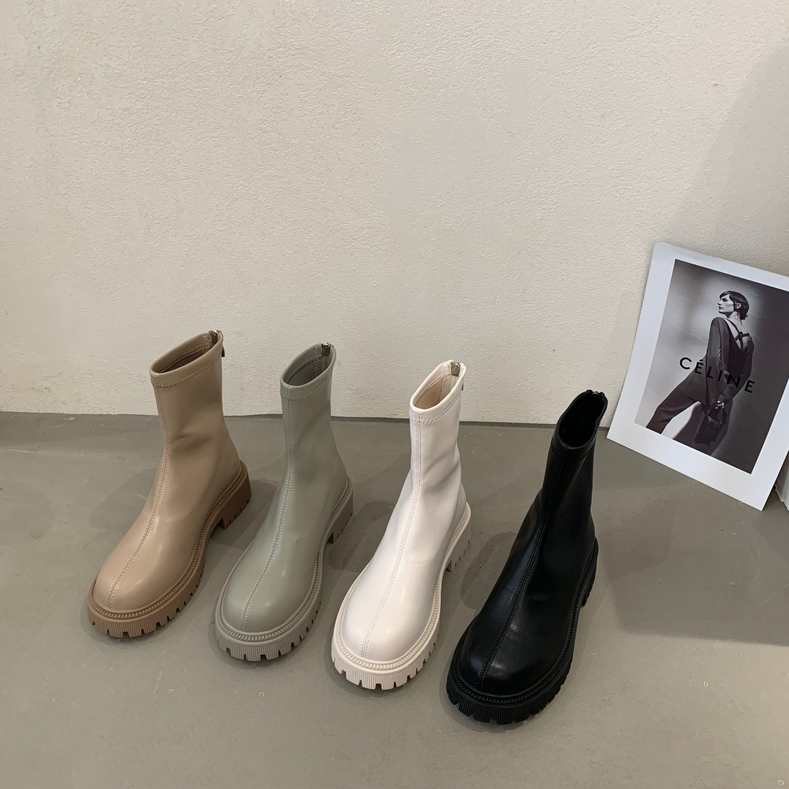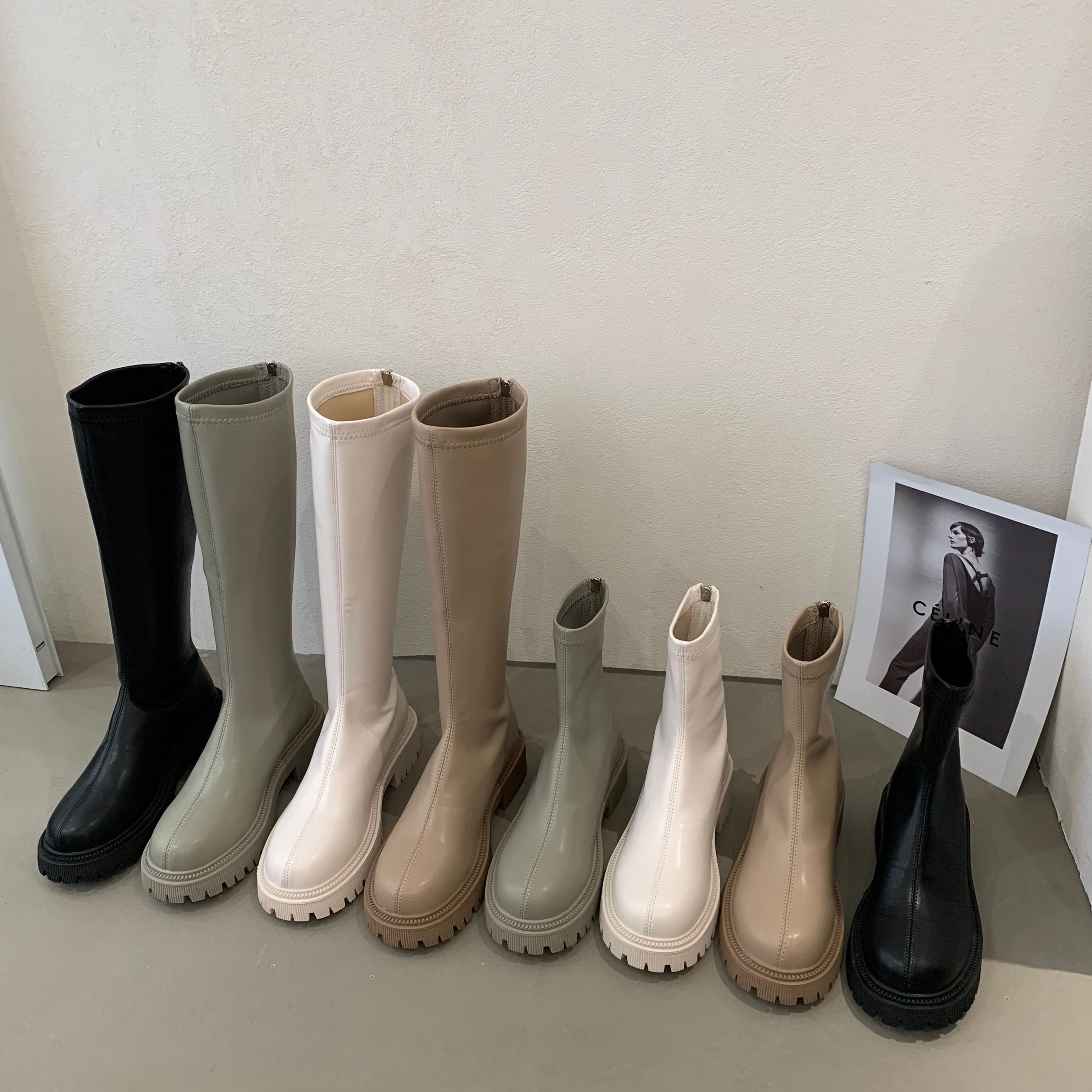 Martens, белые флисовые демисезонные высокие сапоги в английском стиле, французский ретро стиль