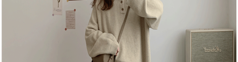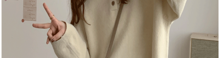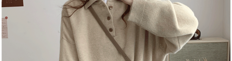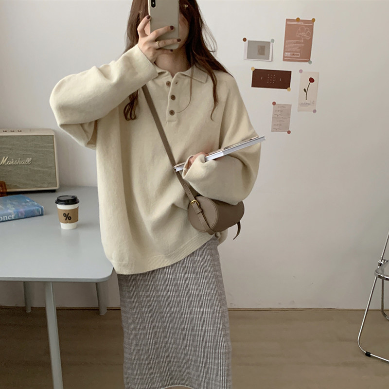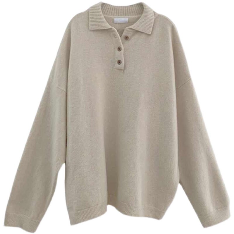 Демисезонный свитер, лонгслив, трикотажные нарукавники, свободный крой, в корейском стиле, воротник поло